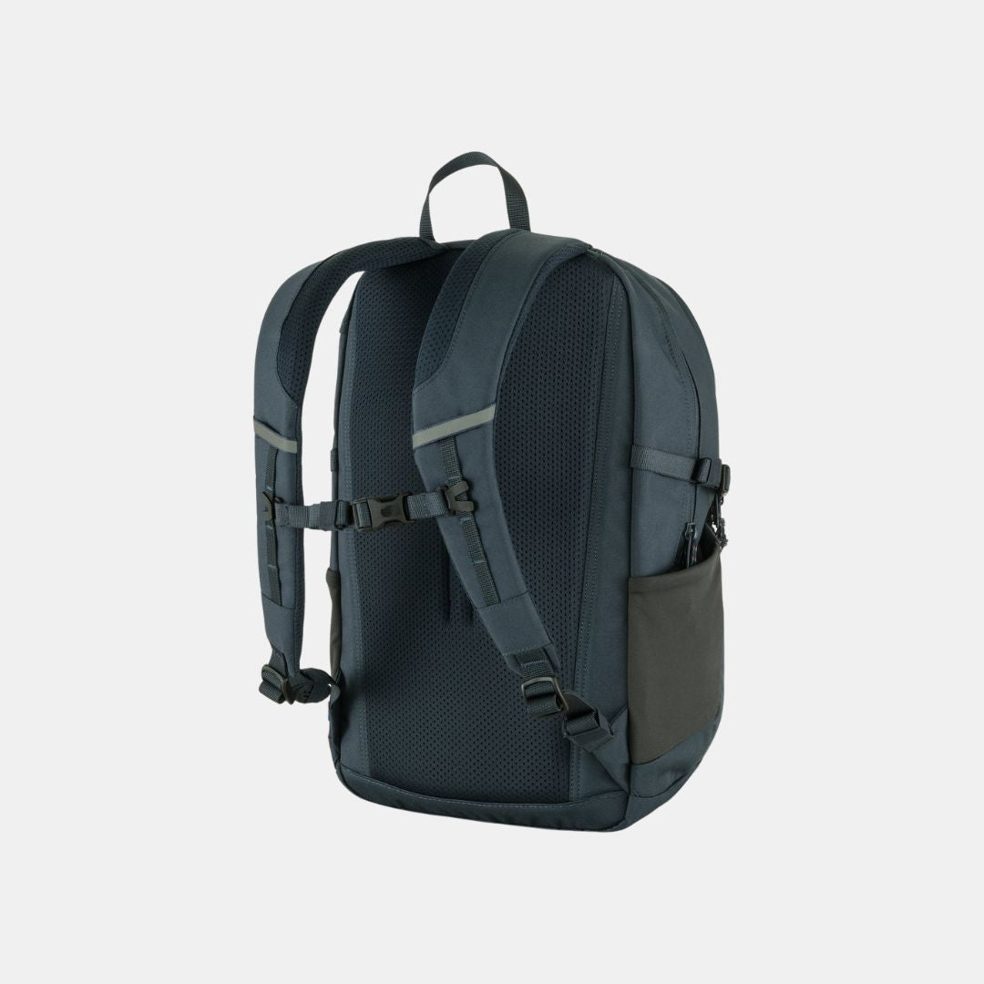 La hermana pequeña de la Skule 28, esta mochila es perfecta para la escuela, el trabajo o excursiones cortas a la naturaleza. Cuenta con un compartimento principal con una funda acolchada y elevada para portátil, un compartimento frontal con bolsillos organizadores y un bolsillo superior con cremallera de fácil acceso. Está hecha de tela Oxford resistente e impermeable de poliéster reciclado. También cuenta con un cómodo panel trasero con malla transpirable, correas de hombro acolchadas y correas de pecho ajustables.