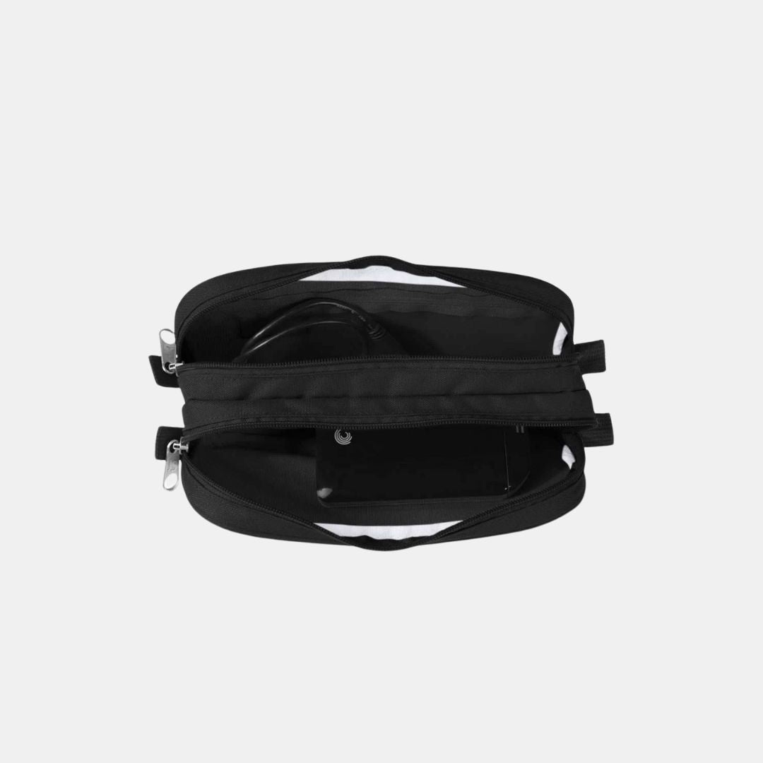 Las grandes ideas necesitan una bolsa grande para accesorios. Los dos compartimentos son perfectos para llevar bolígrafos y lápices en un lado y cables de alimentación u otros suministros en el otro. Las cremalleras dobles garantizan que ambos lados de los 79 pulgadas cúbicas de espacio de almacenamiento estén seguros.