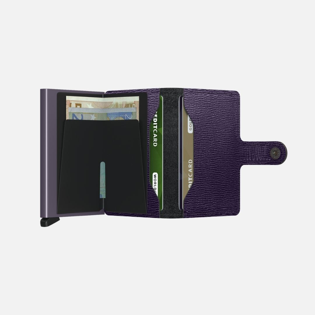 De tamaño pequeño pero con una capacidad sorprendentemente grande: la Miniwallet satisface todas las necesidades. La cubierta exterior puede contener billetes, tickets y tarjetas, mientras que el Cardprotector de aluminio permite extraer las tarjetas con un simple movimiento, evitando que se doblen, rompan o lean sin que nos demos cuenta.