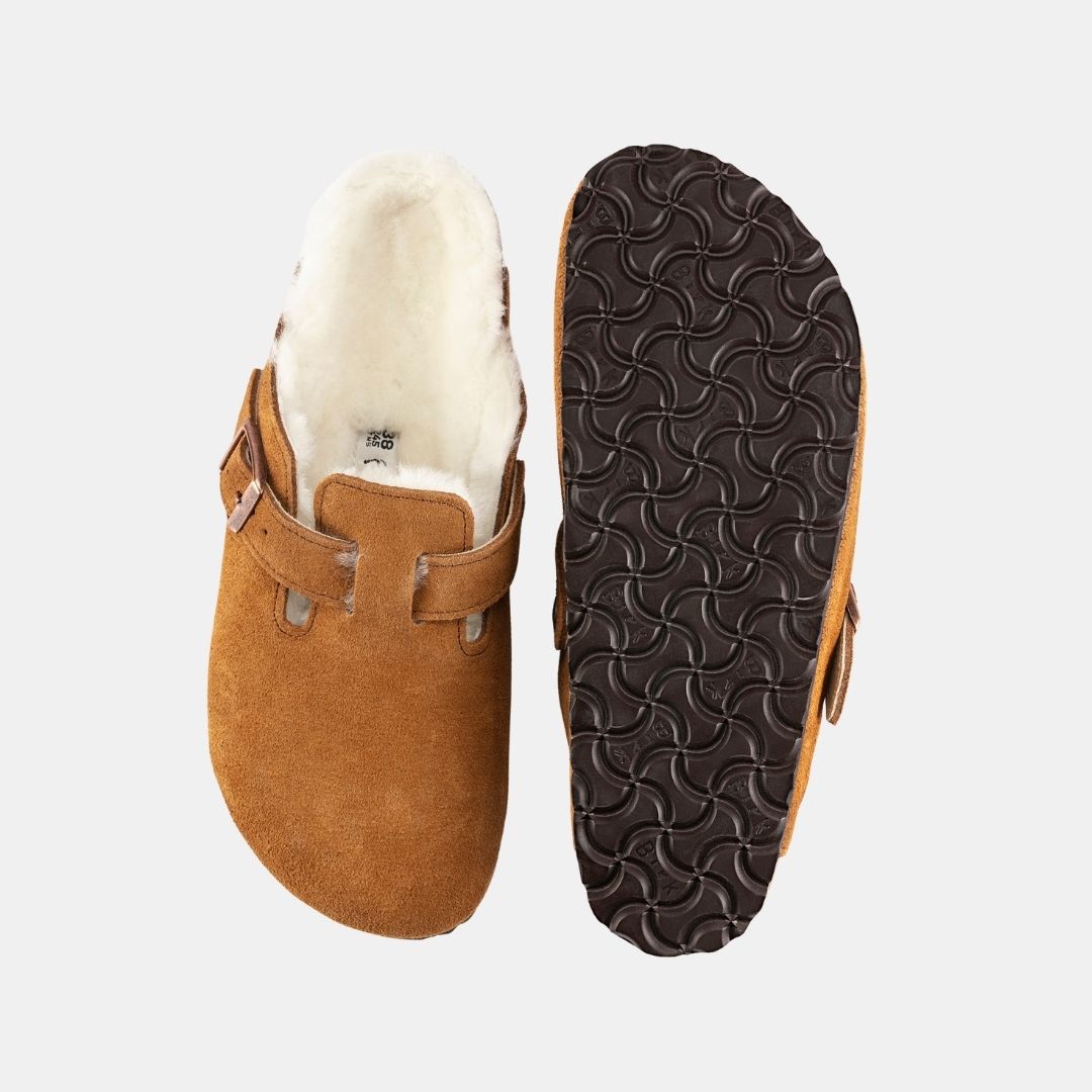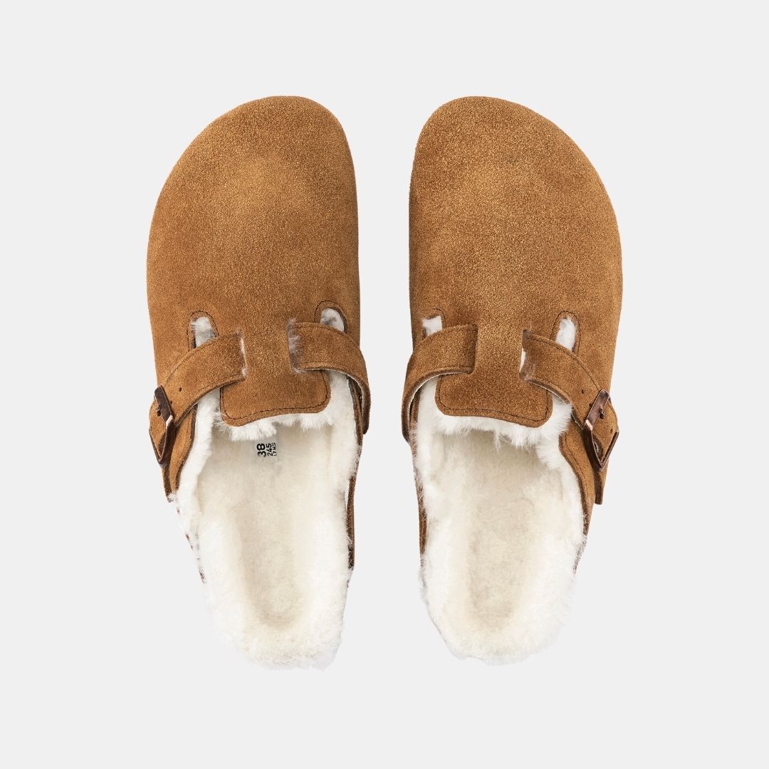 Todo un clásico entre los modelos BIRKENSTOCK como es el zueco Boston aparece aquí en una variante especialmente hogareña, confeccionada con ante genuino de alta calidad. La cubierta superior de la suela —de lana de borrego natural— y las correas revestidas por abajo del mismo modo, aportan un toque de estilo al tiempo que calientan el pie. El calzado perfecto para pasar agradables tardes de invierno frente a la chimenea.