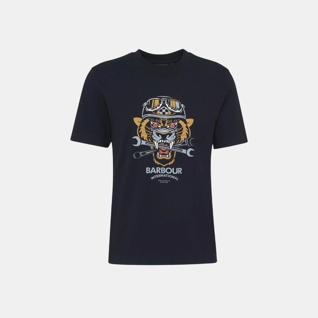 La historia de Barbour International comenzó en 1936 cuando Duncan Barbour, la tercera generación de la familia Barbour y un apasionado del motociclismo, diseñó un mono de algodón encerado de una pieza para las Pruebas Internacionales de los Seis Días. La camiseta gráfica B.Intl Carlisle rinde homenaje a este año como el inicio de todo.