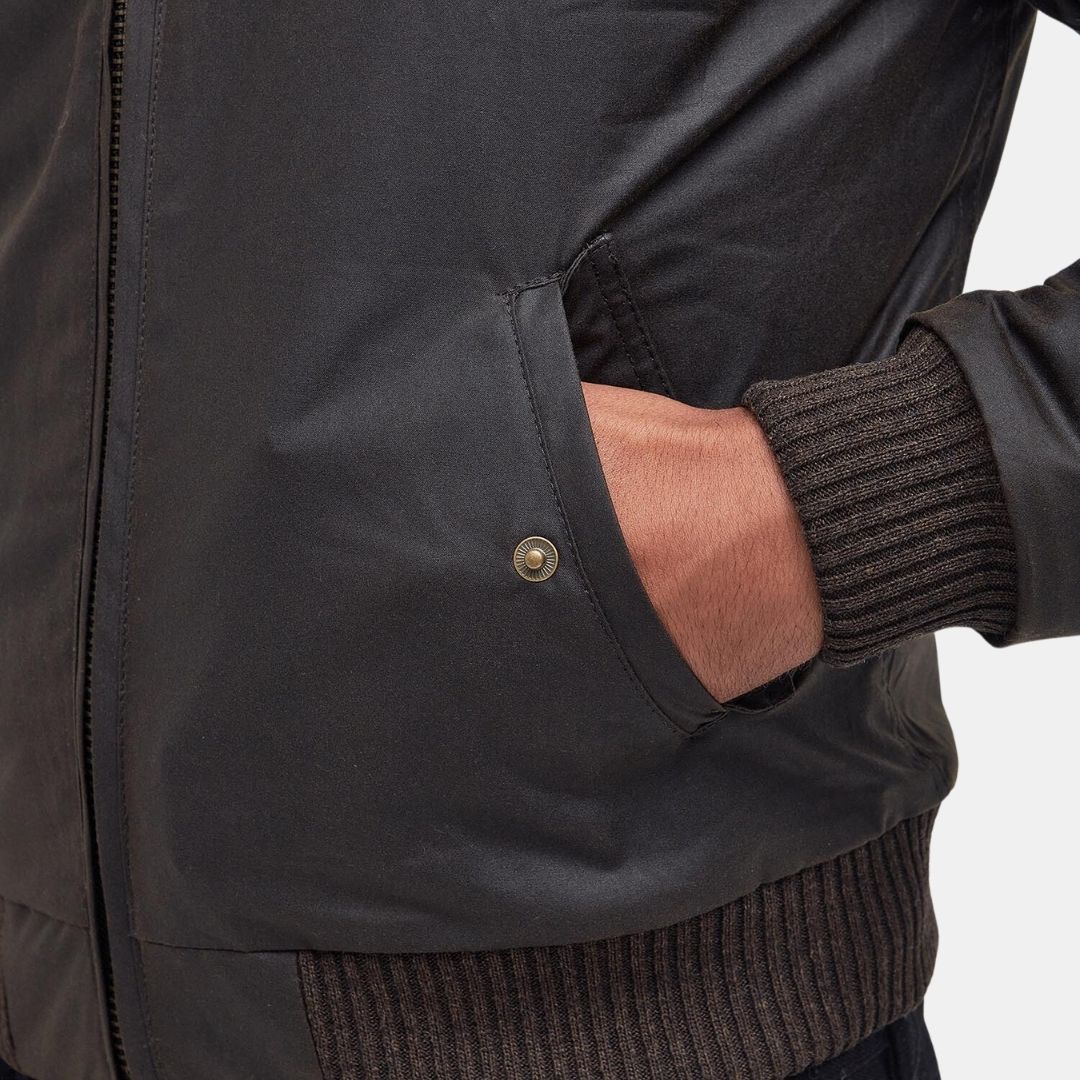 De la colección Steve McQueen™ International, la chaqueta Merchant es una chaqueta encerada estilo bomber confeccionada con un resistente exterior de algodón encerado, inspirada en las chaquetas que usaba el actor y piloto estadounidense. Resistente para el día a día, la Merchant es una chaqueta sencilla y robusta de peso medio con un forro de nailon acolchado para mayor calidez. Su cuello chimenea forrado de pana con cierre de tachuelas le da el clásico look International. El tejido acanalado en las mangas y la cintura ofrece mayor protección contra el viento, y los bolsillos en ángulo con cierre de tachuelas mantienen las manos libres.