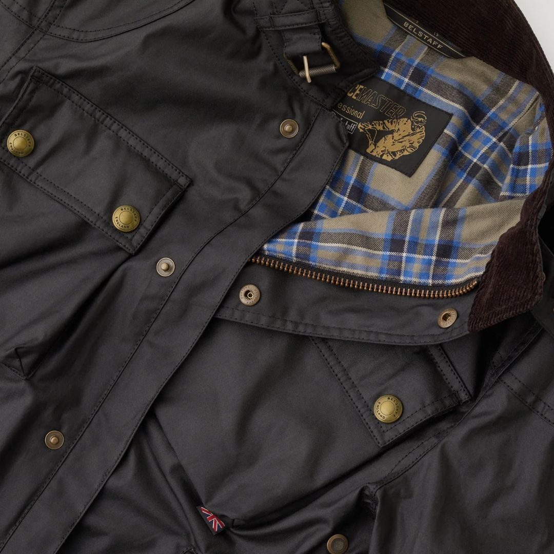 La chaqueta Racemaster en color negro. La Racemaster es mucho más de lo que se ve a simple vista. Esta chaqueta se presentó en 1981 como una versión más corta de la emblemática Trialmaster. Se diseñó para ofrecer más libertad de movimiento, aparte de historia y legado, gracias a su confección en algodón encerado de 170 gramos en color azul marino oscuro.