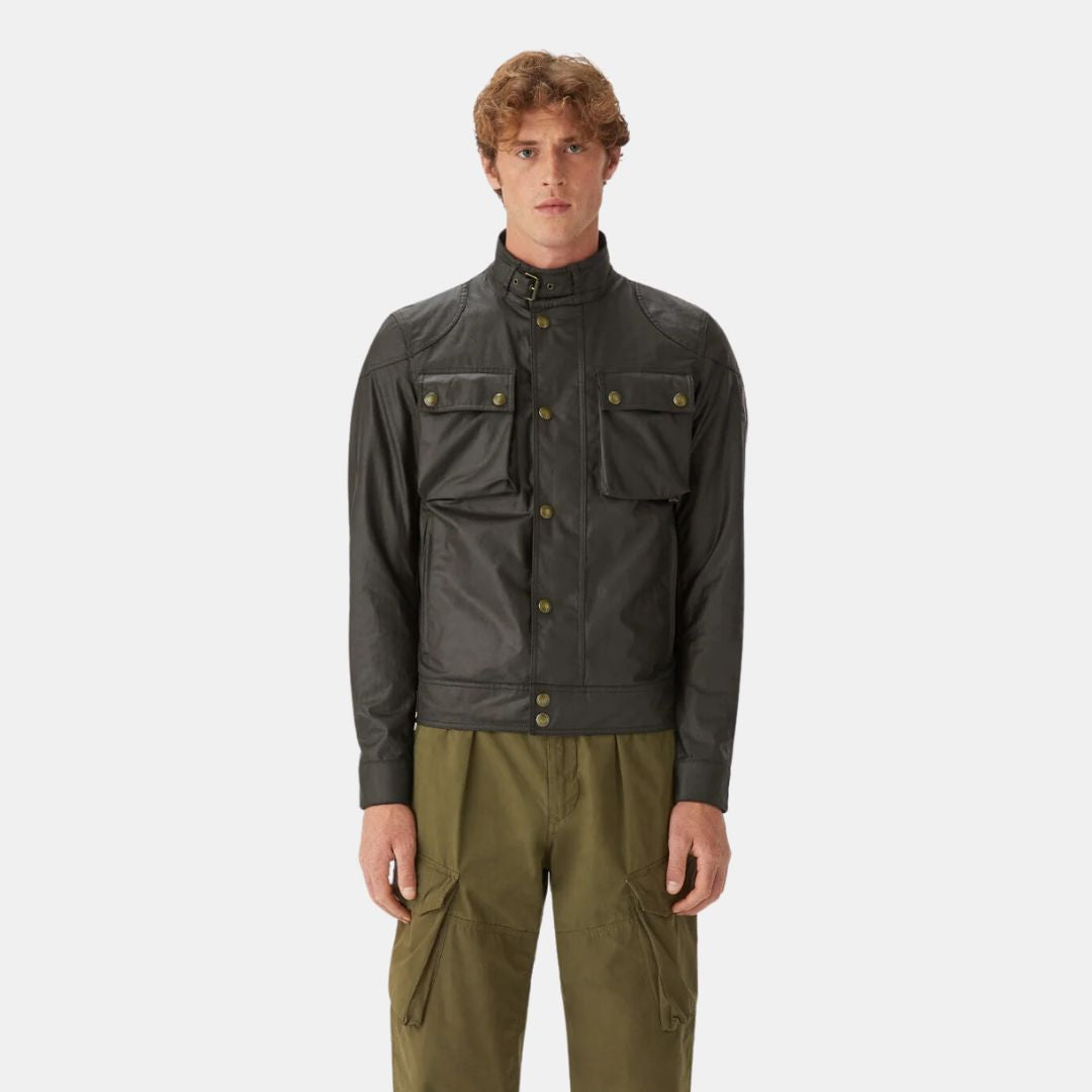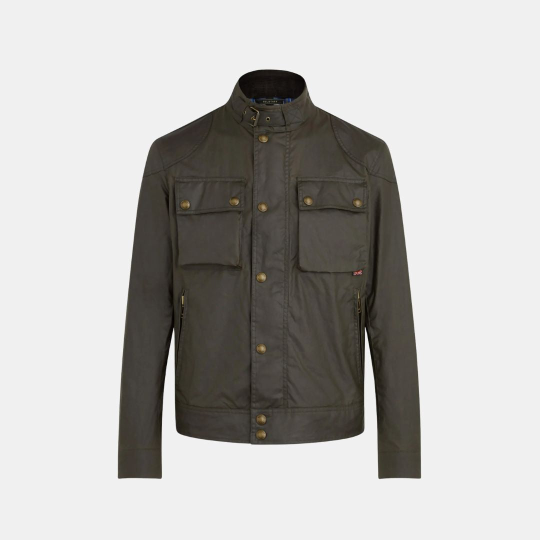 • Piezas metálicas emblemáticas de latón antiguo, con «Belstaff England» grabado en la parte redonda y el emblemático parche tejido del ave fénix en la manga izquierda
