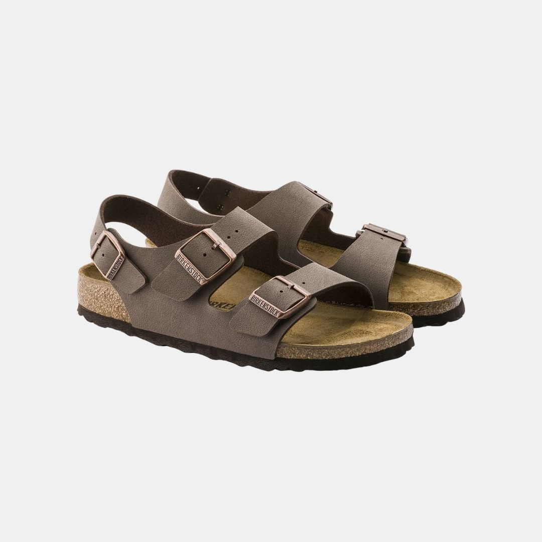 El modelo Milano de BIRKENSTOCK es adecuado para todos los que pasan mucho tiempo de pie. La parte superior continua, realizada de manera algo más compacta en los laterales, ayuda a un firme ajuste y aporta estabilidad a los pies en todos los movimientos. El material superior está hecho de Birko-Flor®, que es respetuoso con la piel y resistente, y se presenta aquí con un elegante aspecto de nubuc.