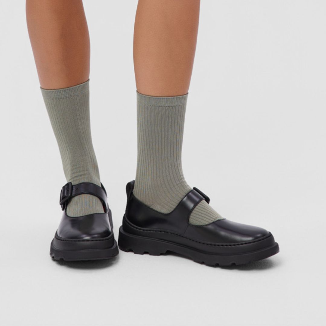 Mocasines negros para mujer de piel vacuna con plantilla de PU, entresuela de EVA y suelas de goma BRIDGE XTRAGRIP.