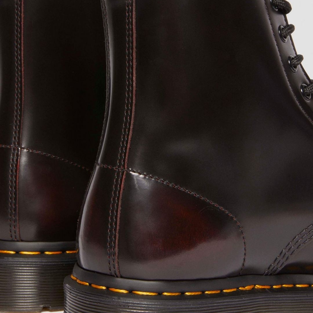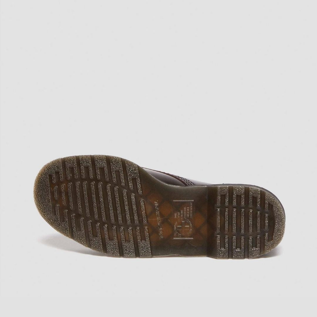 Muestra tus colores. La clásica bota 1460 de piel Arcadia, una piel de alto brillo que con el uso muestra un color subyacente en rojo cereza. Esta bota de 8 ojales tiene un diseño más afilado y cuenta con todo el ADN de DM's: la tradiciónal suela DMS, el emblemático pespunte amarillo y el tirador de talón de talón Air.