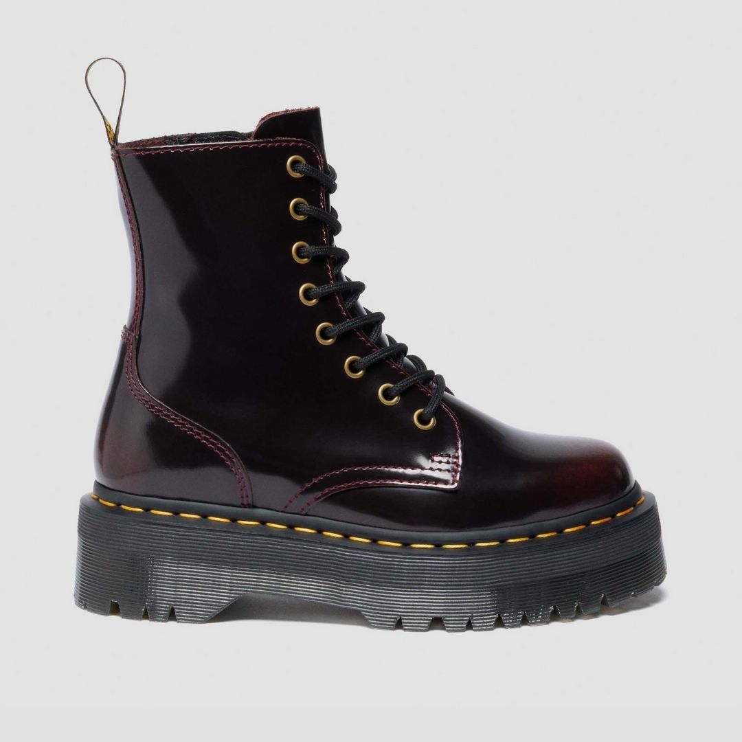 El modelo Jadon es una reinterpretación a todo volumen de nuestra emblemática bota 1460. A sus 8 ojales, la suela con surcos en los laterales, el tirador con el logo AirWair y el pespunte, le suma una plataforma extra gruesa que la eleva al siguiente nivel. Y la bota estrella de la temporada está ahora disponible en cuero Arcadia Cherry Red, un cuero diseñado para cambiar de color con el tiempo.