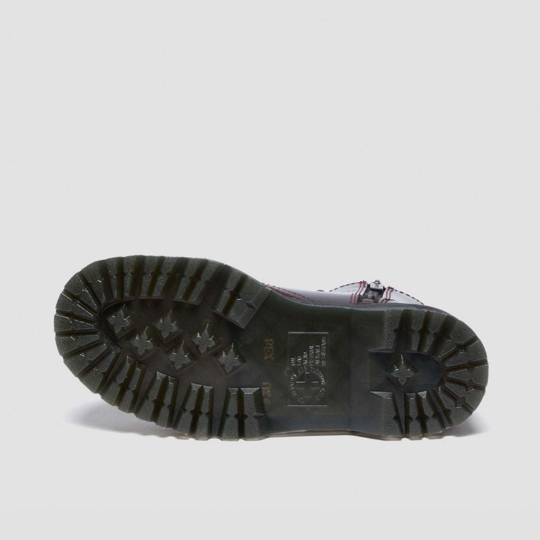 - Cuenta con los elementos característicos del ADN de Dr. Martens, como la suela con cámara de aire y surcos laterales y el pespunte.