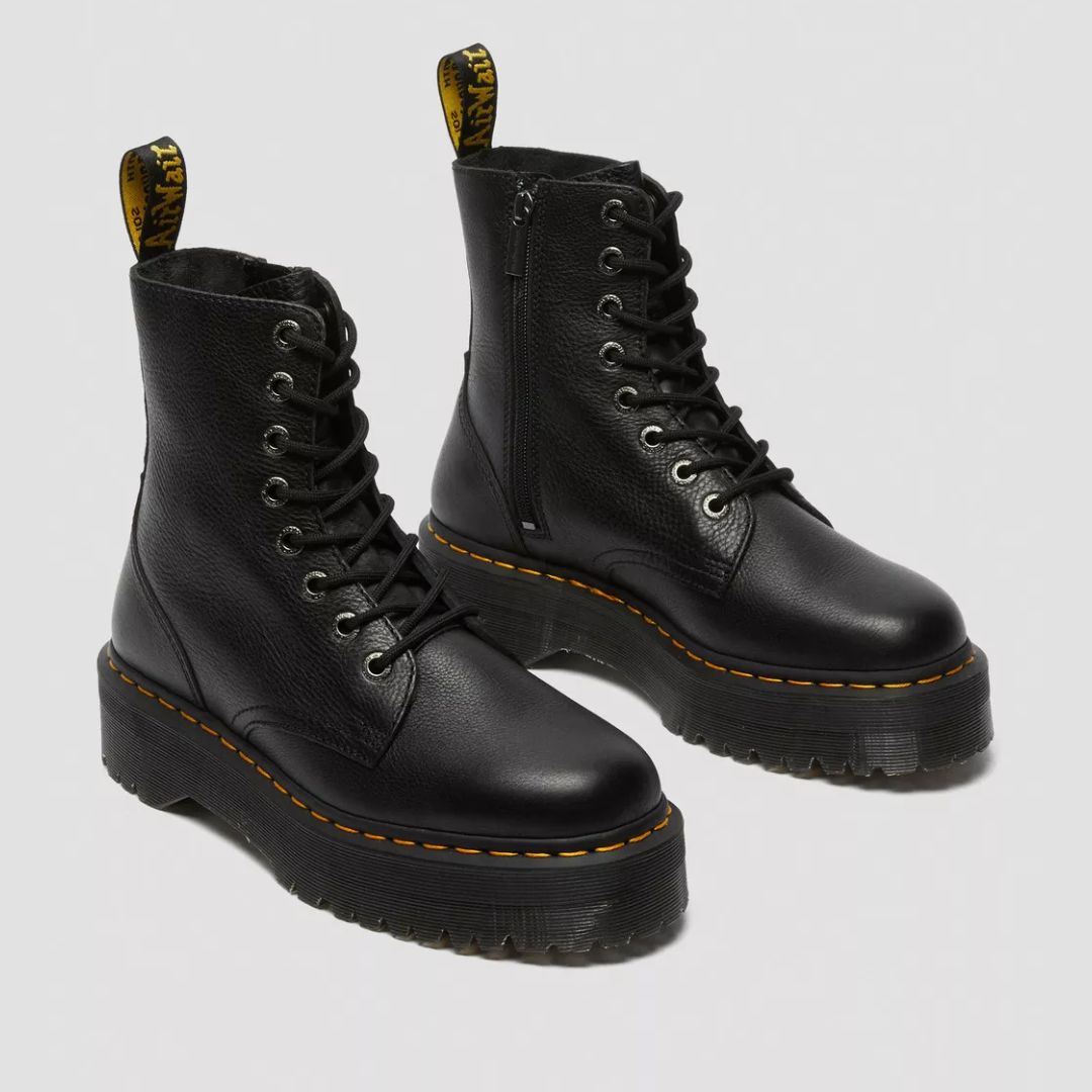 Una evolución a todo volumen de la silueta Original: la bota Jadon vuelve esta temporada en una versión que capta la atención al instante. La bota Jadon II se ha confeccionado en una piel Pisa abatanada con una textura y un acabado encerado muy atractivos. Las botas con plataforma se asientan sobre nuestra suela de 4.7 cm con cámara de aire y están acabadas con el inconfundible pespunte amarillo y un tirador con el logo en blanco y negro.