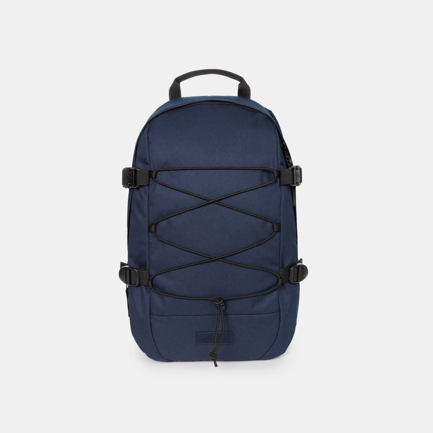 Una ochila amplia con un gran compartimento principal, una funda para el portátil y un portabotellas. Está diseñada para aventuras al aire libre y tiene correas de compresión y una cuerda elástica externa para sujetar accesorios adicionales sobre la marcha.