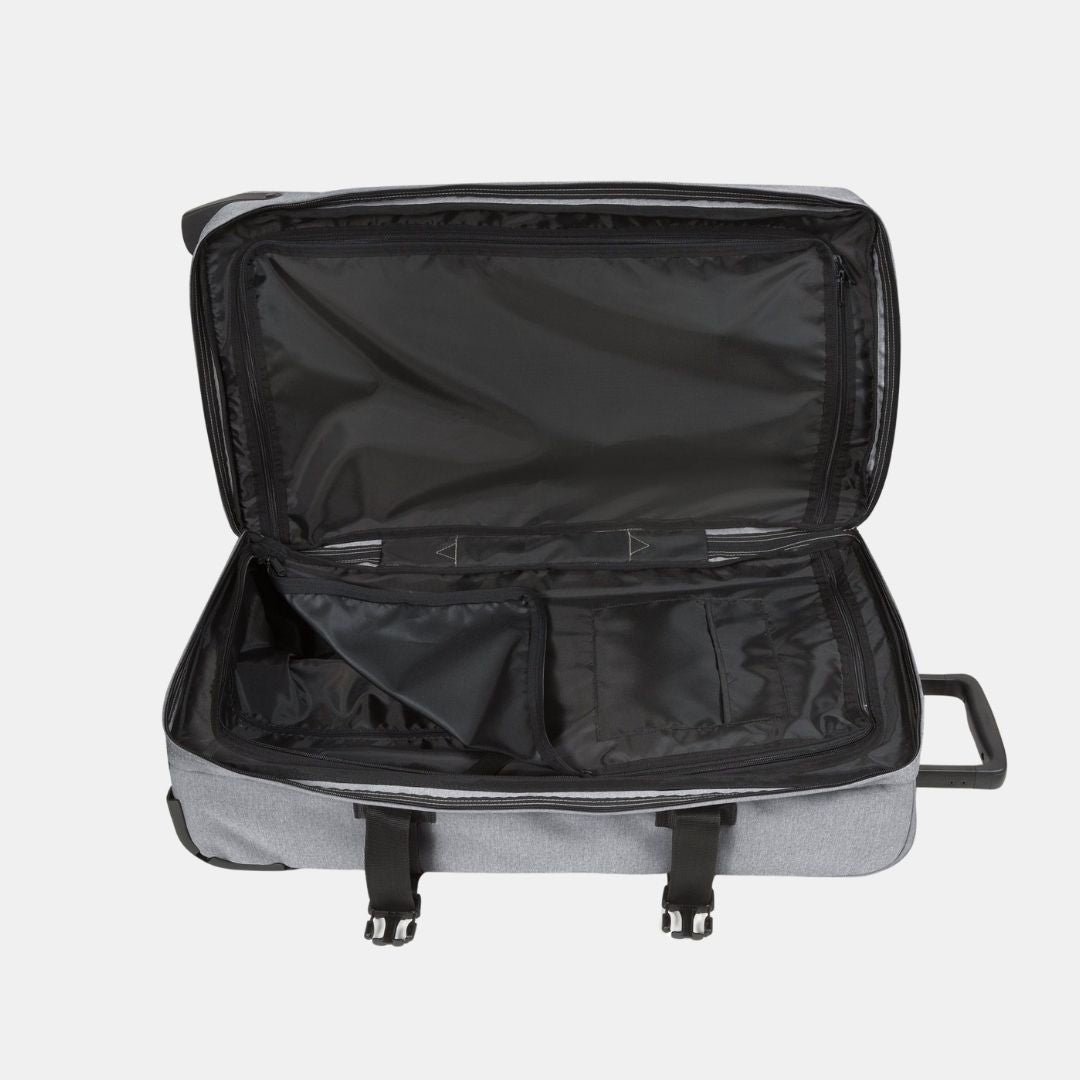 Elegante maleta de viaje en color Sunday Grey llena ambos compartimentos, llévala con facilidad y almacénala sin que te ocupe espacio