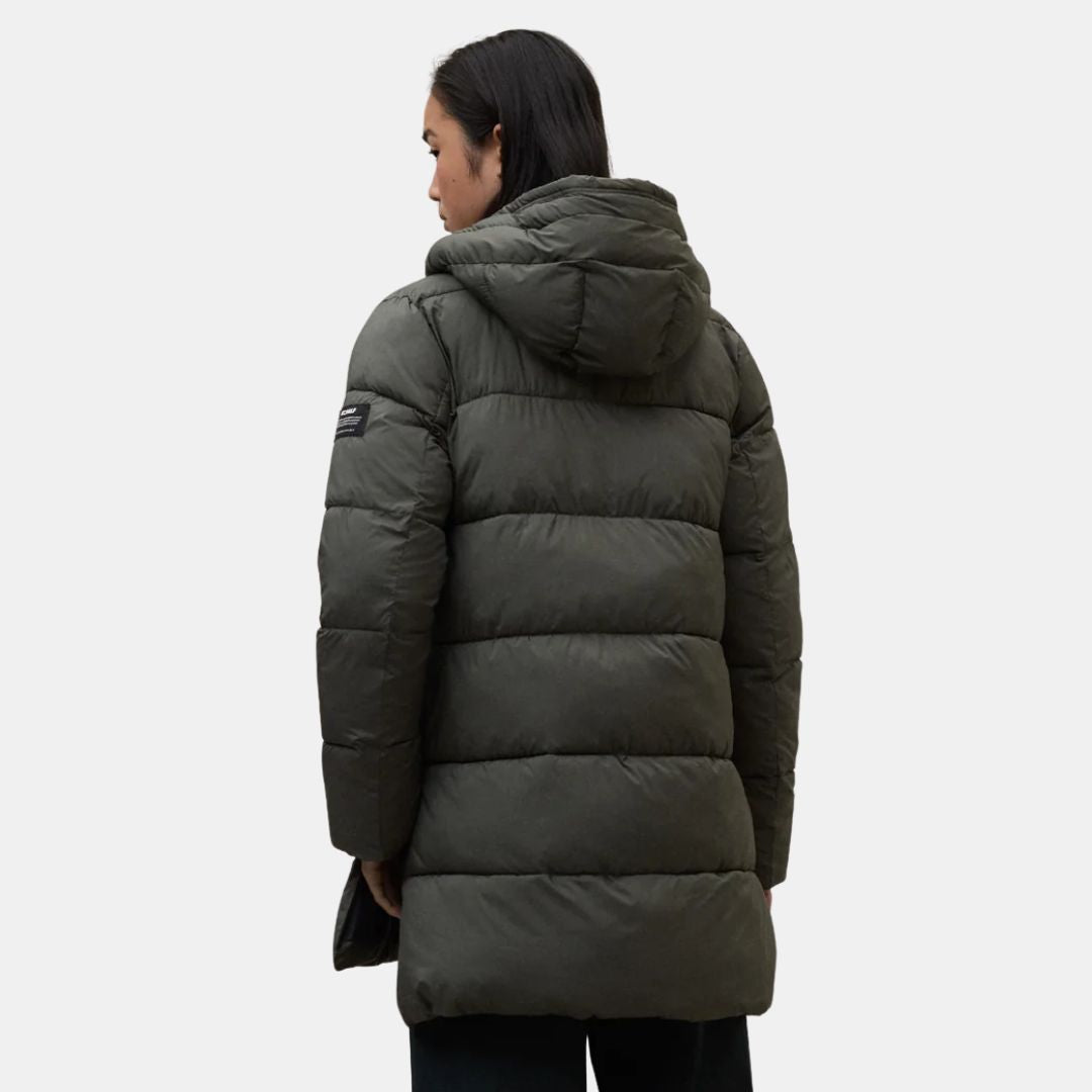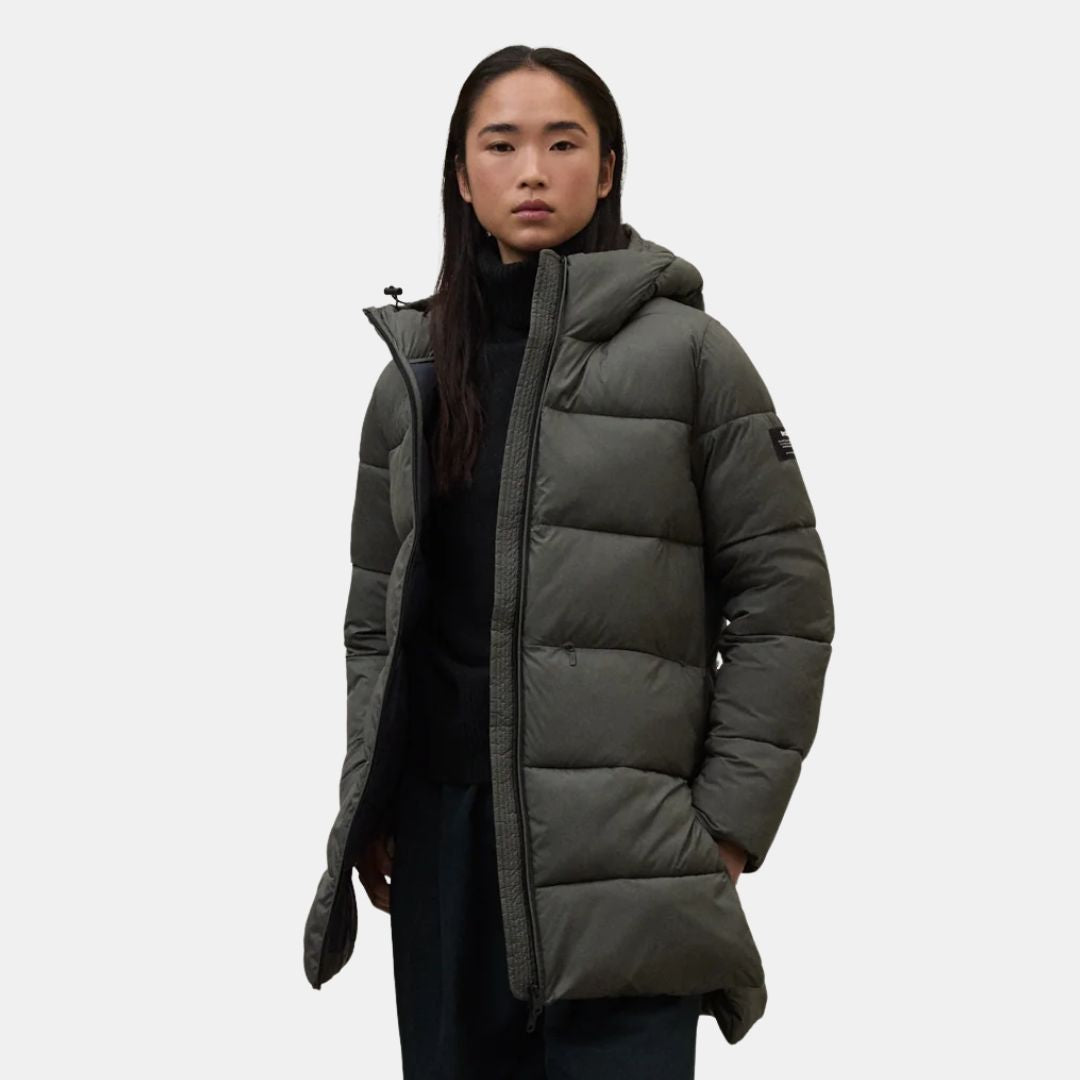 El abrigo Marangu está confeccionado con tejido principal 100% Poliéster reciclado, forro 100% Poliéster reciclado y relleno PrimaLoft® 100% Poliéster reciclado. El poliéster reciclado reduce el uso de recursos fósiles, emisiones de CO2 y consumo de agua y energía, al reutilizar residuos plásticos como botellas PET, manteniendo las propiedades del poliéster virgen.