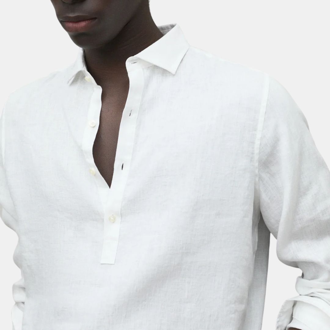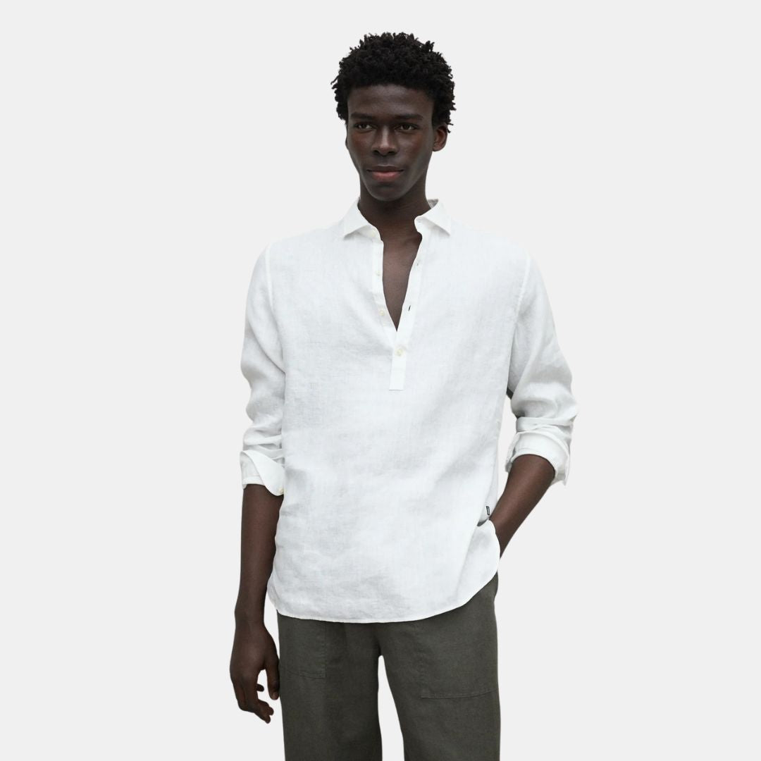 La camisa Polino, confeccionada con un material principal de 100% lino. El mínimo impacto medioambiental del lino lo convierte en una opción destacada. El lino requiere mucha menos agua y pesticidas que otros cultivos y, además, es biodegradable. Ofrece una combinación de frescura y estilo. Es ideal para lograr un look elegante y relajado en cualquier ocasión.