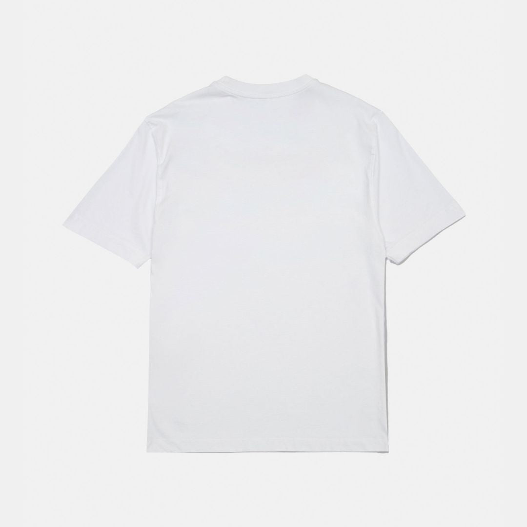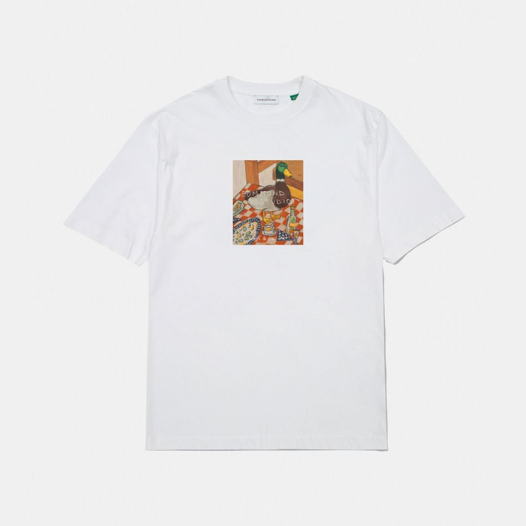 Camiseta blanca de manga corta, fabricada con algodón 100% orgánico. Diseñada con un corte relajado y una longitud perfecta. Con un diseño especial del pato característico en la parte delantera y el logotipo "Edmmond Studios".