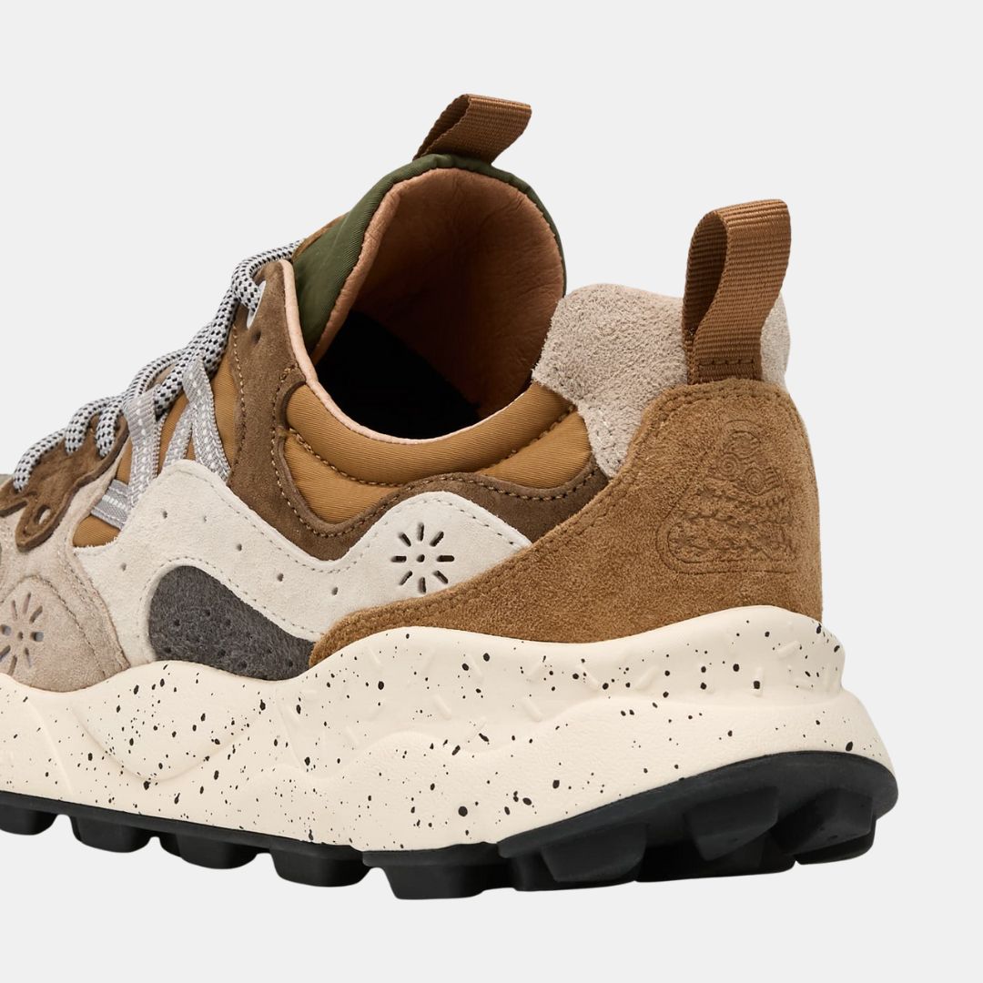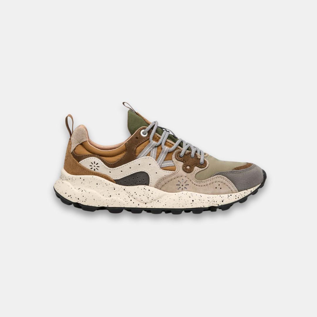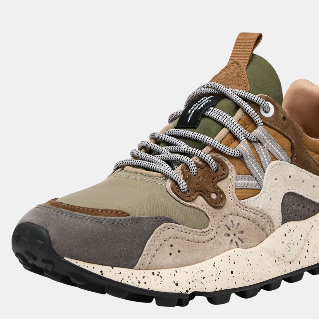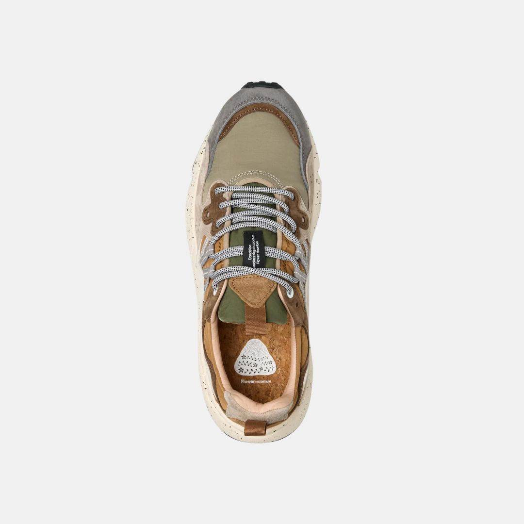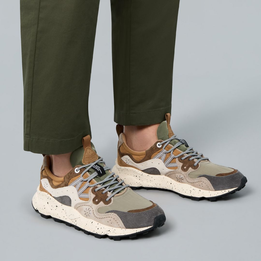 De estilo deportivo, la zapatilla Yamano 3 es también la opción más moderna para looks urbanos: la parte superior de tejido técnico con inserciones de ante presenta perforaciones icónicas y un cierre de cordones con ojales reforzados y cordones de trekking, inspirados en modelos de alto rendimiento. La comodidad y el bienestar están garantizados por la plantilla anatómica y antibacteriana de corcho, y la suela de goma ultraligera con formas laterales y dibujo dentado.
