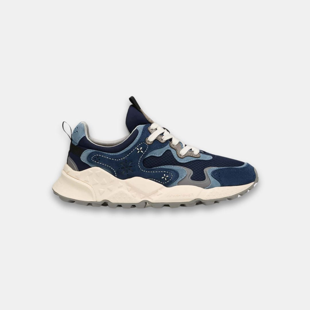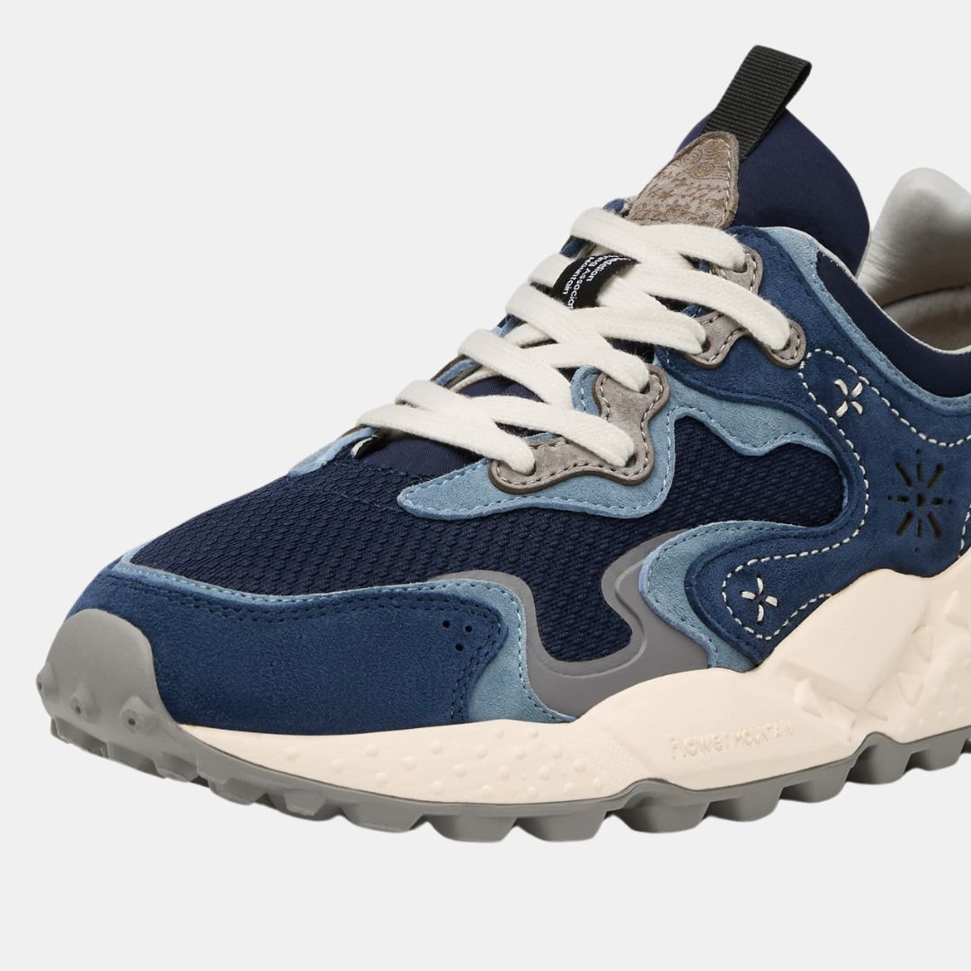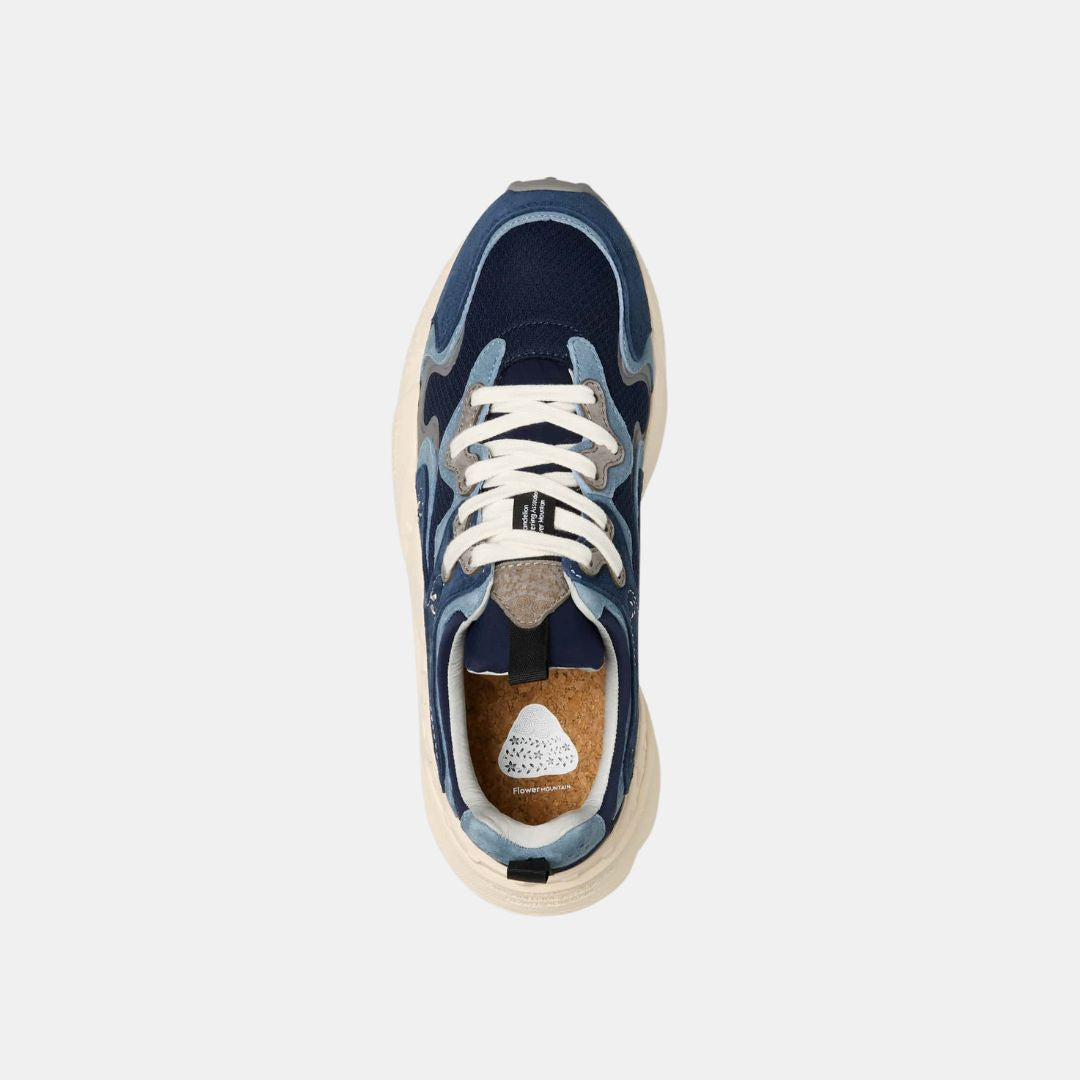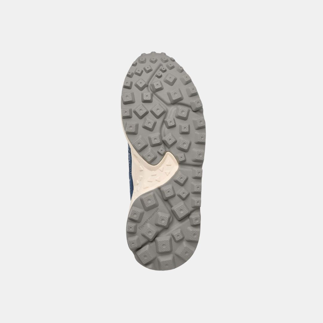 Zapatilla deportiva con parte superior de tejido de punto con inserciones de ante multicolor trabajado con la técnica de superposición. Cierre con cordones de algodón y ojales reforzados. Forro de piel, plantilla de corcho natural antibacteriano. Suela de goma ultraligera con contornos laterales y dibujo dentado.