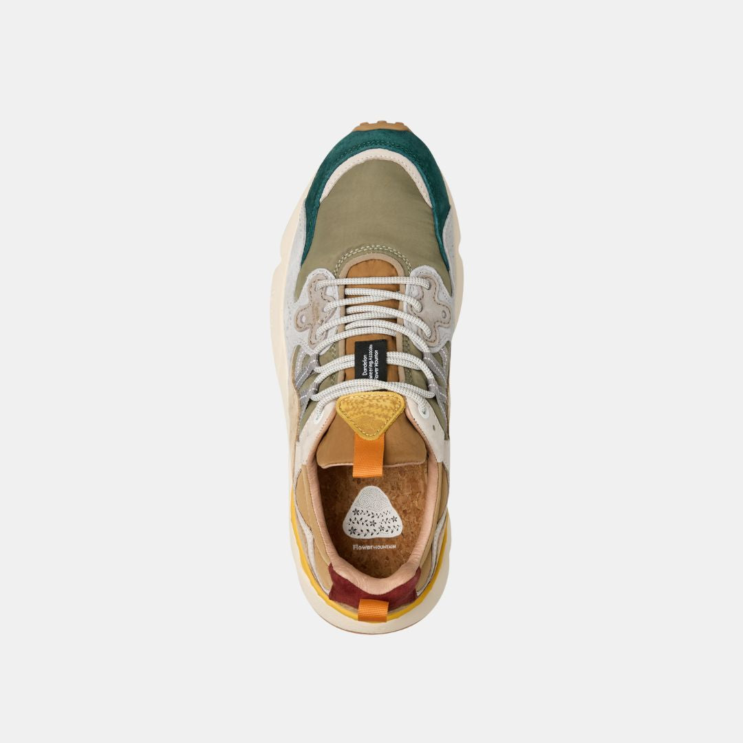 De estilo deportivo, la zapatilla Yamano 3 es también la opción más moderna para looks urbanos: la parte superior de tejido técnico con inserciones de ante presenta perforaciones icónicas y un cierre de cordones con ojales reforzados y cordones de trekking, inspirados en modelos de alto rendimiento. La comodidad y el bienestar están garantizados por la plantilla anatómica y antibacteriana de corcho, y la suela de goma ultraligera con formas laterales y dibujo dentado.
