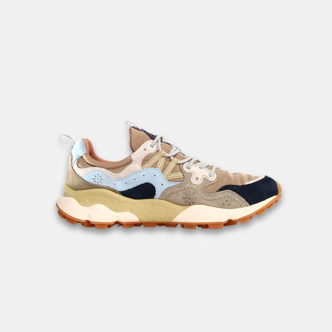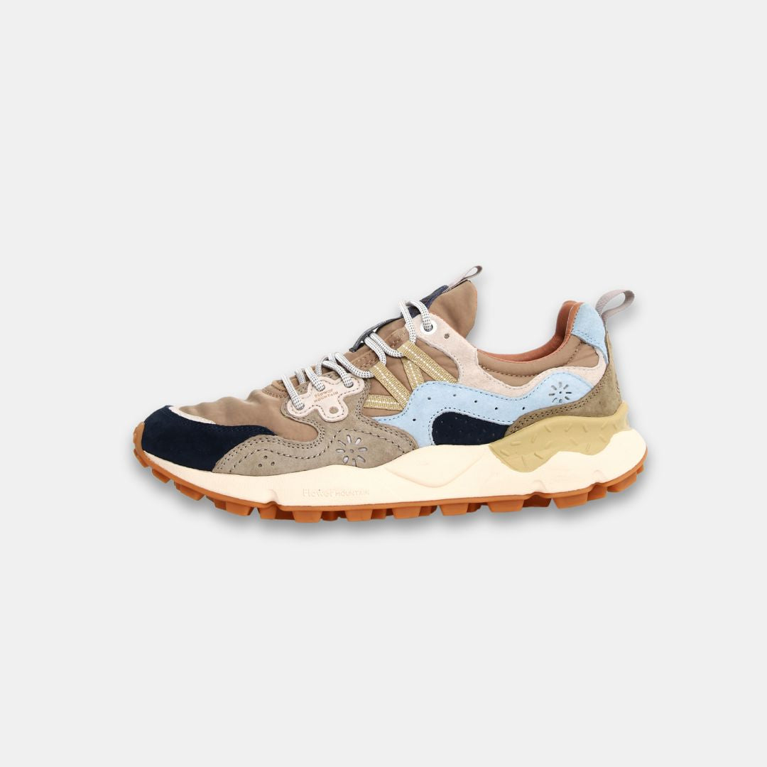 Con una forma deportiva, la zapatilla Yamano 3 es también la opción más cool para los looks metropolitanos: la parte superior de tejido técnico con inserciones de ante presenta perforaciones icónicas y un sistema de cordones con ojales reforzados y cordones de trekking, inspirados en los modelos de alto rendimiento. La comodidad y el bienestar están asegurados por la plantilla de corcho anatómica y antibacteriana, y la suela de goma ultraligera con formas laterales y dibujo dentado.