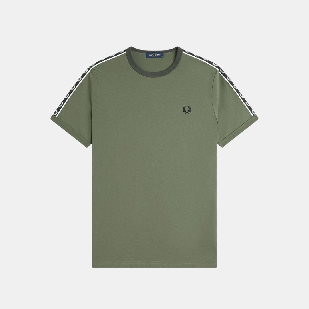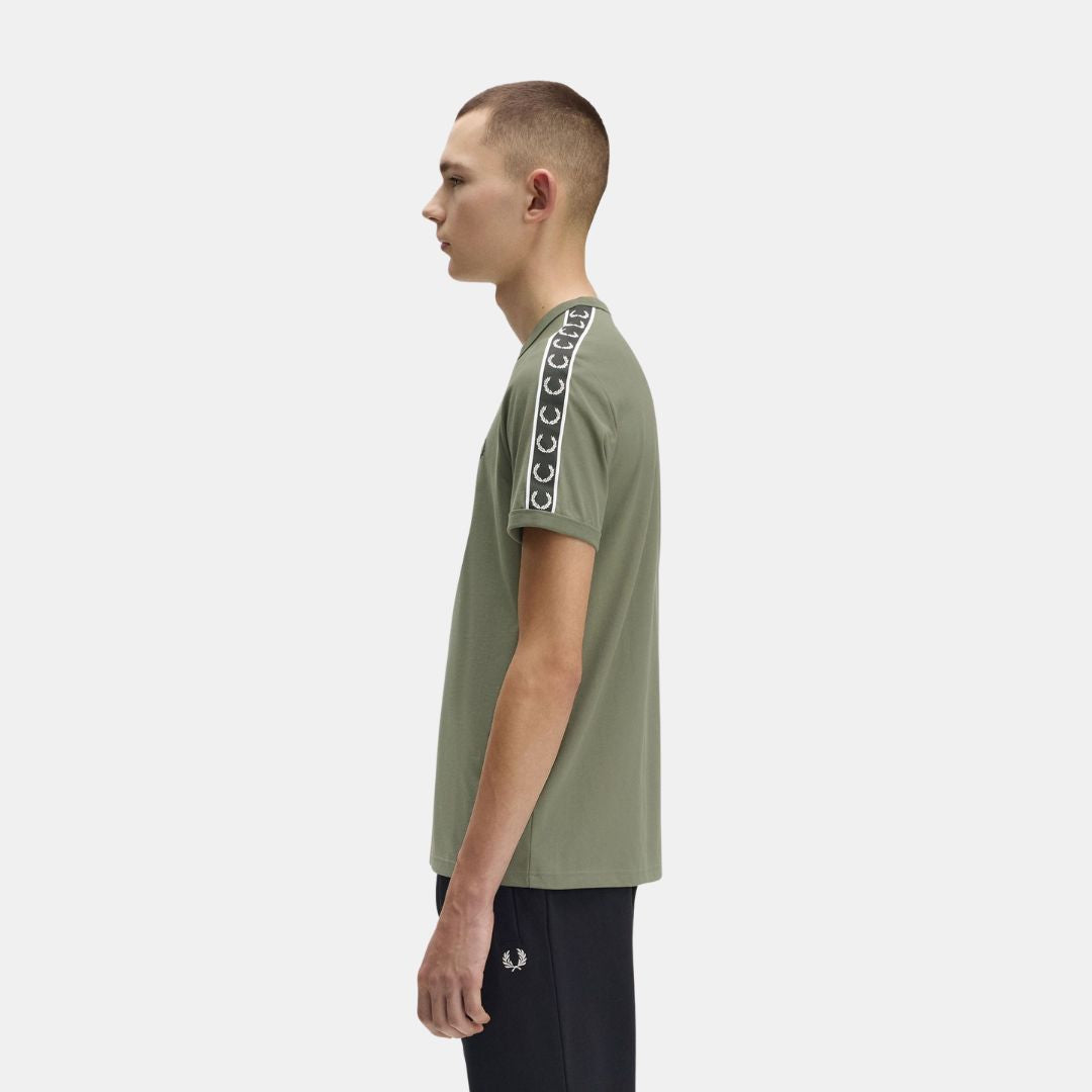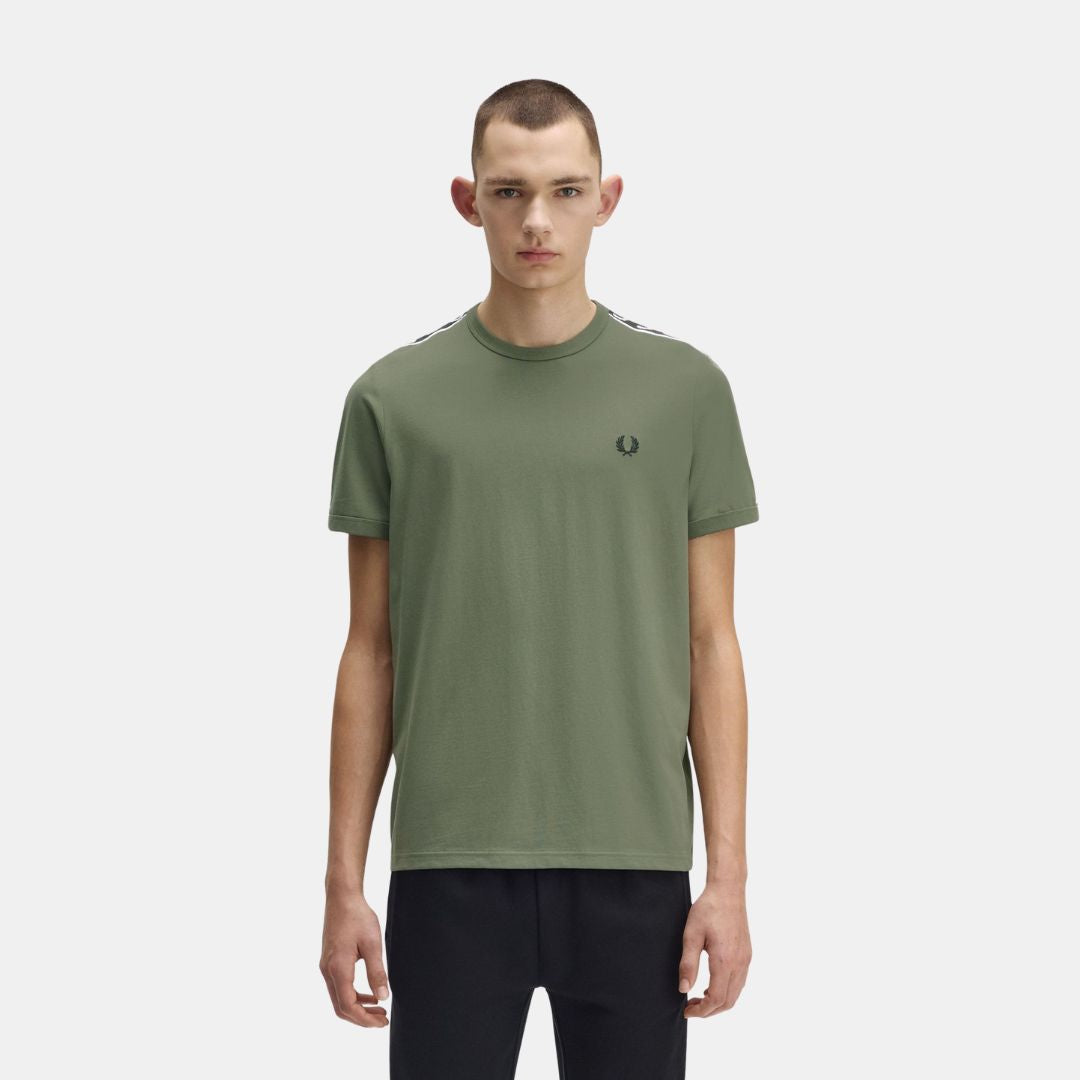 Fred Perry T-Shirt Contrast Ringer Olive & Anchor Grey