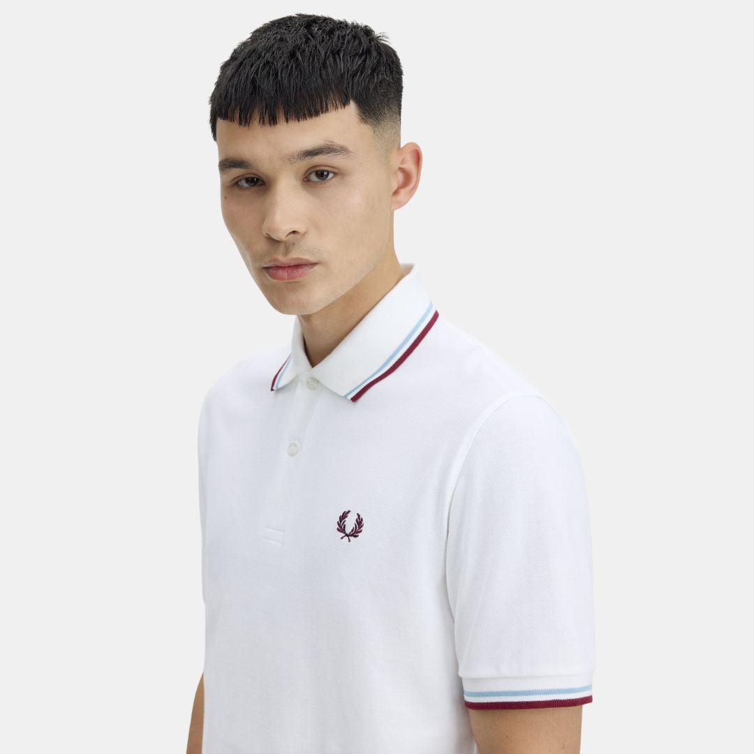 Fred Perry M12 Polo White Ice & Maroon