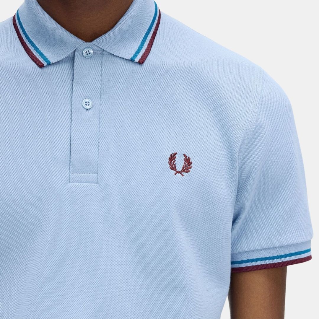 Fred Perry M12 Twin Tipped Shirt Sky Runaway Bay Ocean & Oxblood