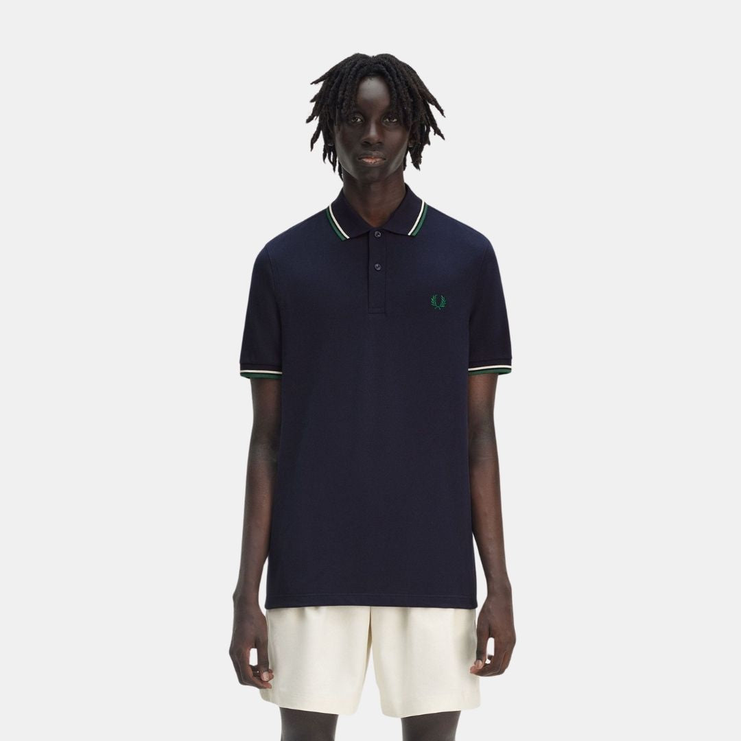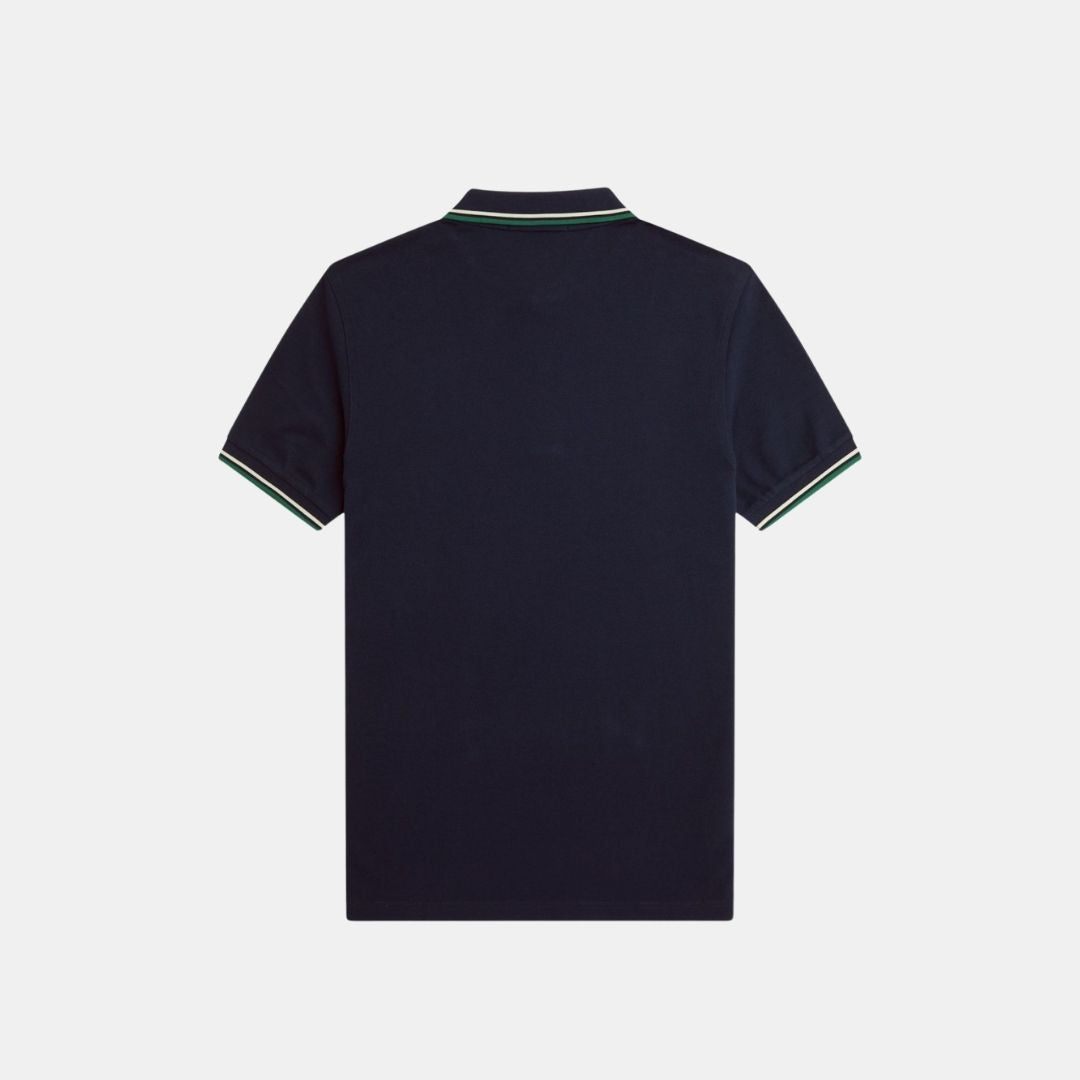 Fred Perry Polo M3600 Dark Carbon Light Ecru & Label Green
