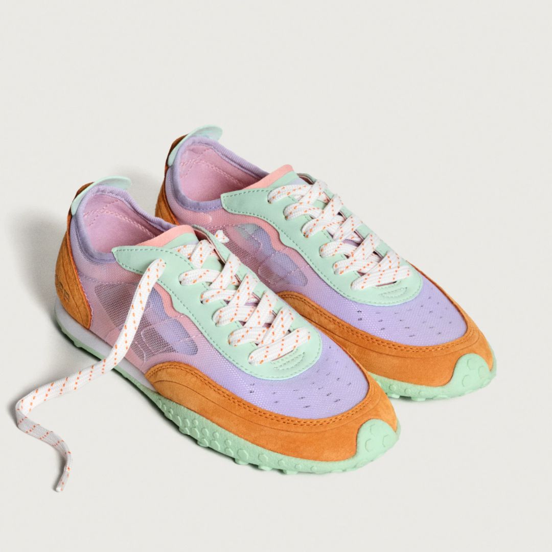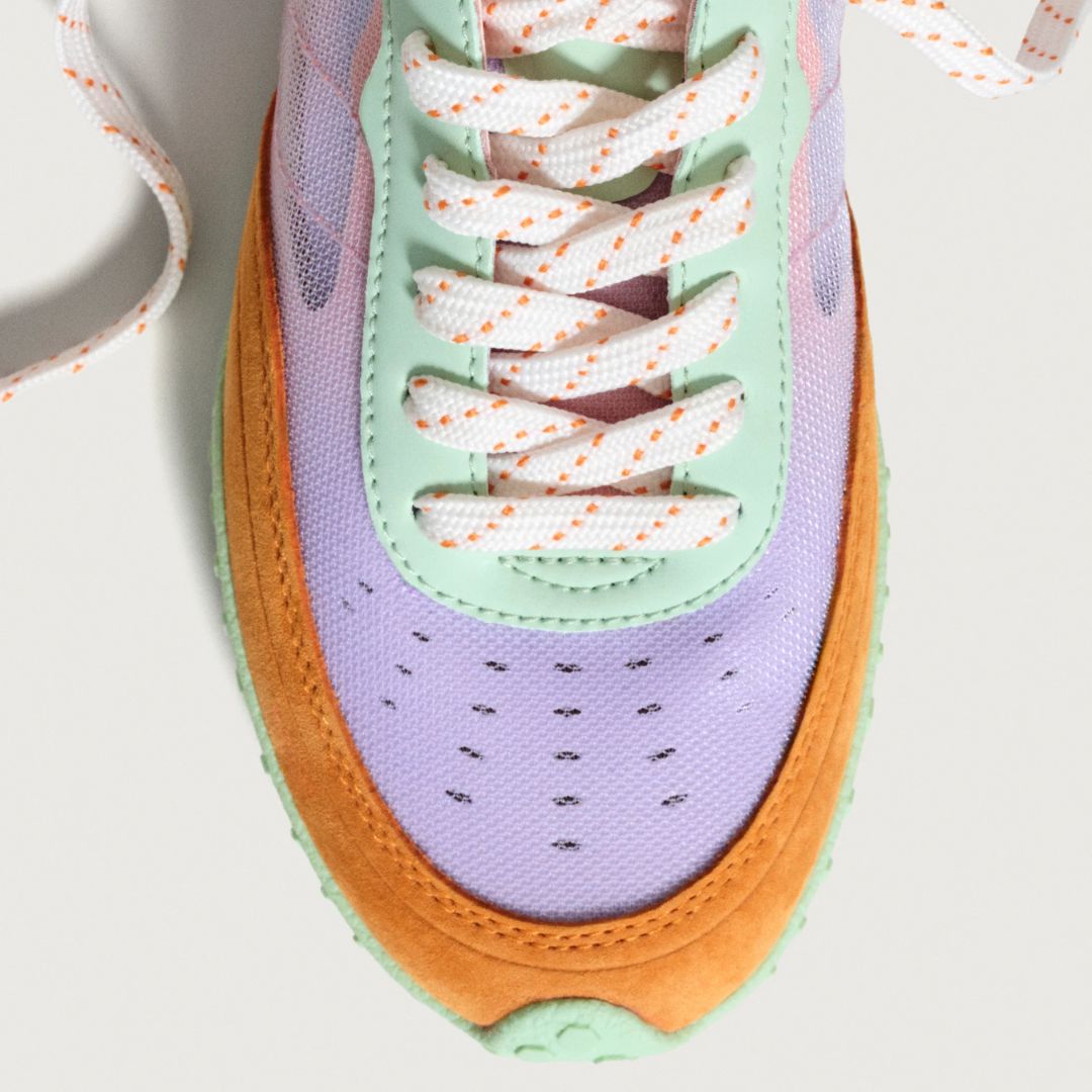 Sneaker en combinación de materiales. Parte trasera con detalle de logo. Suela con textura para mayor agarre. Cierre mediante cordones a tono.