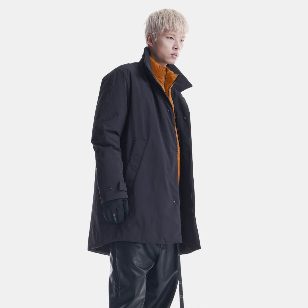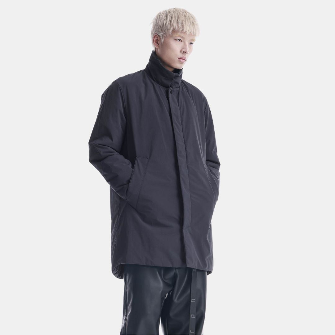 El trench BLERIOT está confeccionada con tejido funcional resistente al agua. El aislamiento de poliéster reciclado conserva la calidez y la forma sin abultar innecesariamente. Los cierres a presión e magnéticos son fáciles de usar incluso con guantes, mientras que la tapeta interior ofrece mayor protección contra el viento. Los bolsillos magnéticos, un compartimento oculto de malla para objetos pequeños, los puños ajustables y la abertura trasera están diseñados para brindar comodidad y libertad de movimiento.