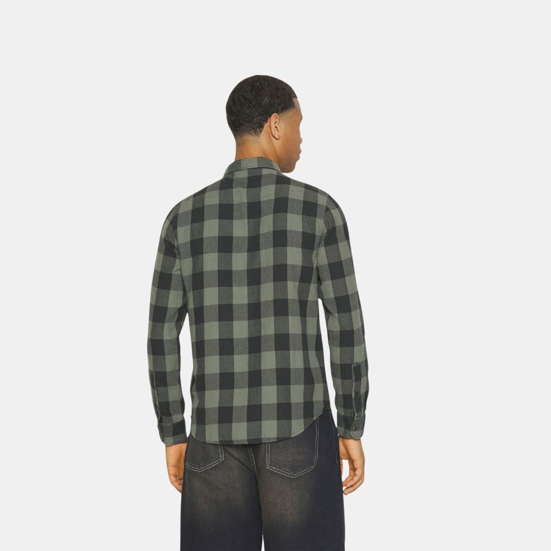 El tejido es una franela a cuadros en espiga de tacto suave. El blanco roto cremoso se complementa con el negro ofreciendo un elegante diseño a cuadros monocromo. La etiqueta Lee en dorado y negro incorpora una lengüeta en el bolsillo izquierdo del pecho.