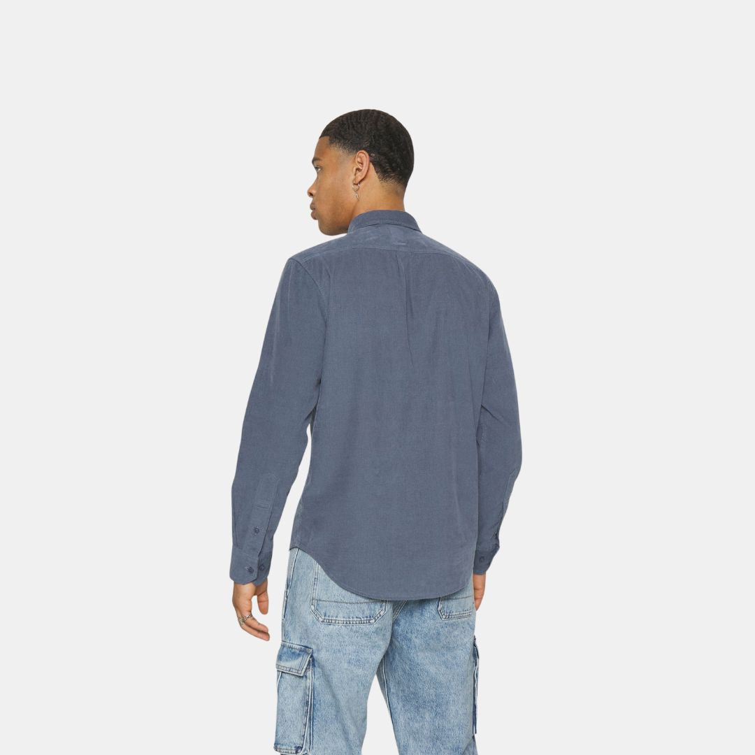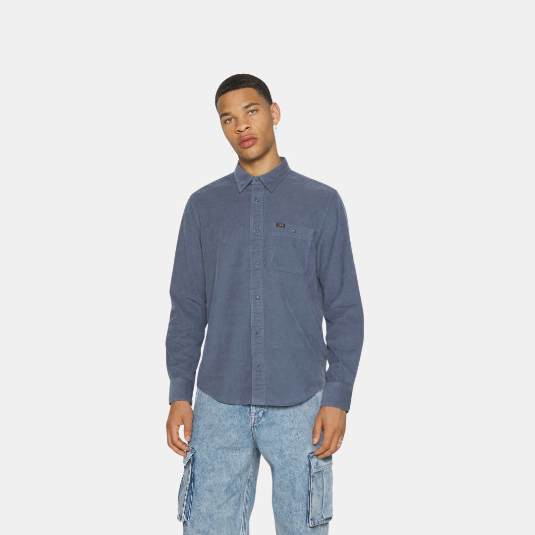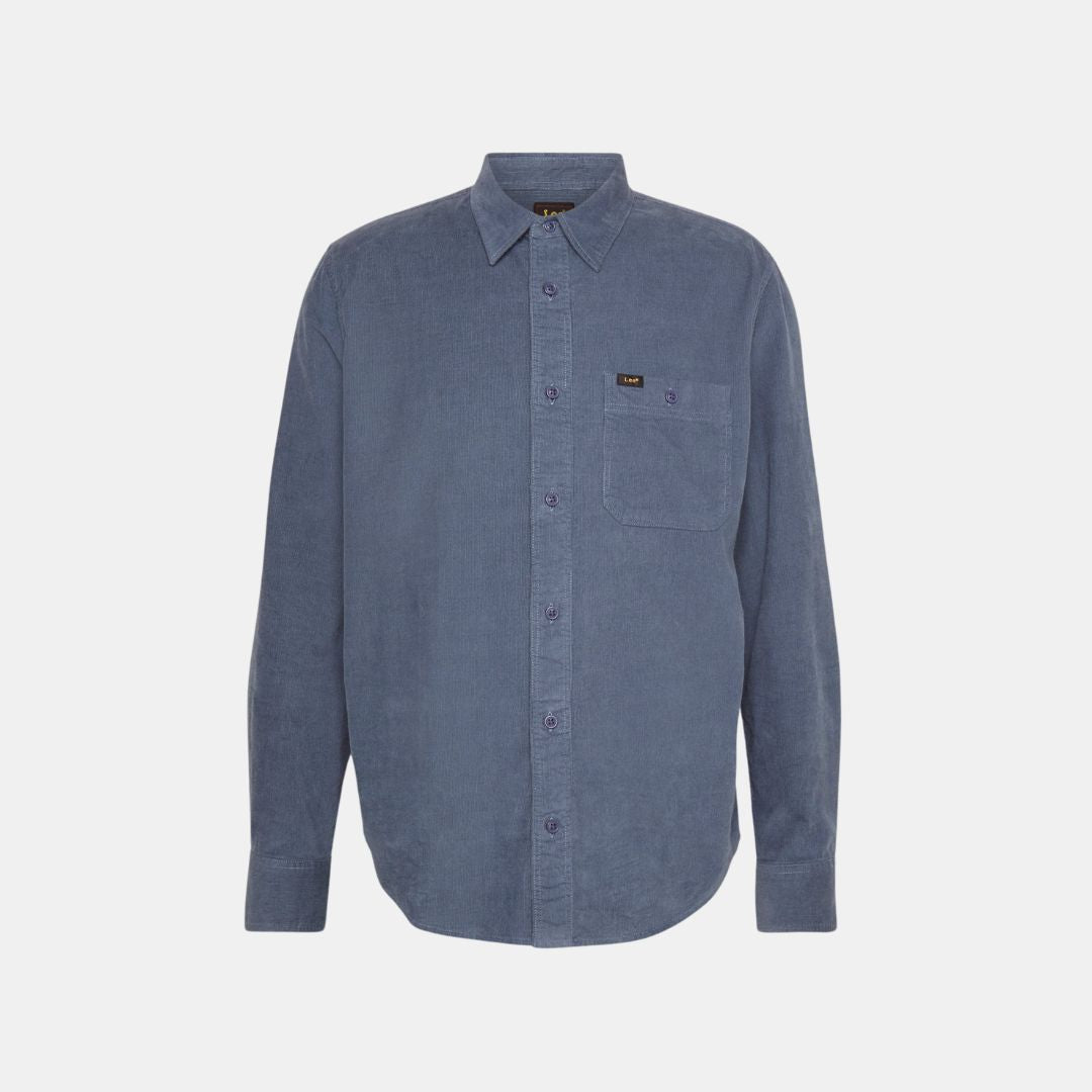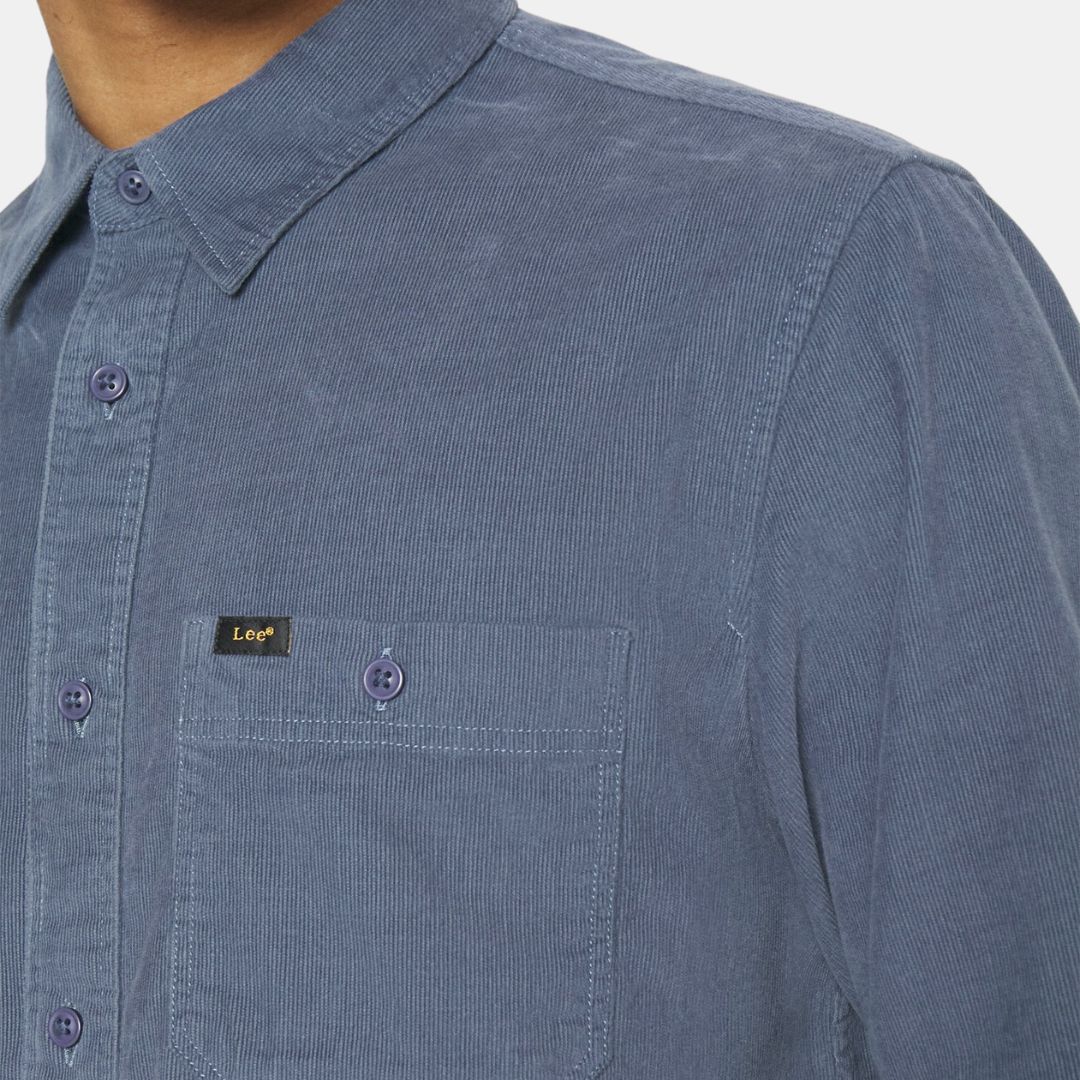 Esta prenda se ha confeccionado en pana aterciopelada. El color azul mar se realza con un matiz grisáceo. La etiqueta Lee en dorado y negro incorpora una lengüeta en el bolsillo izquierdo del pecho.