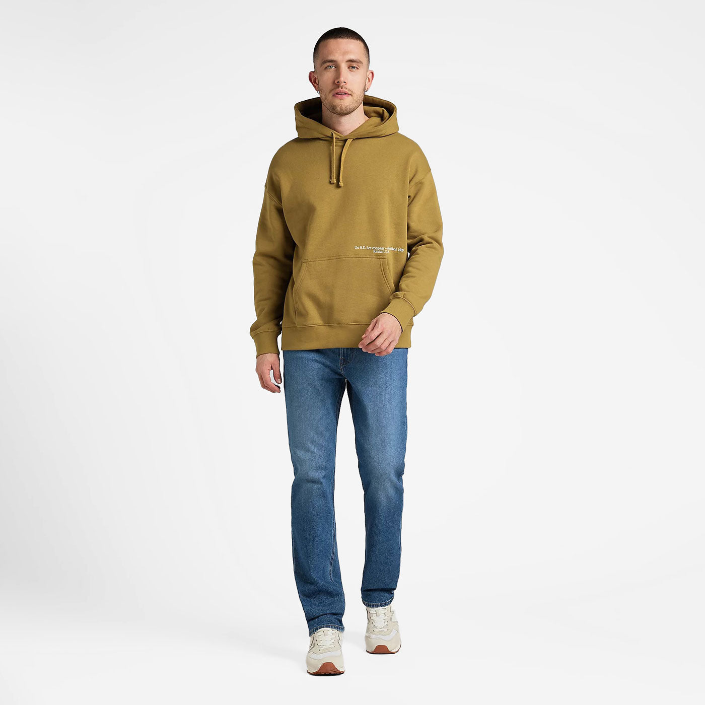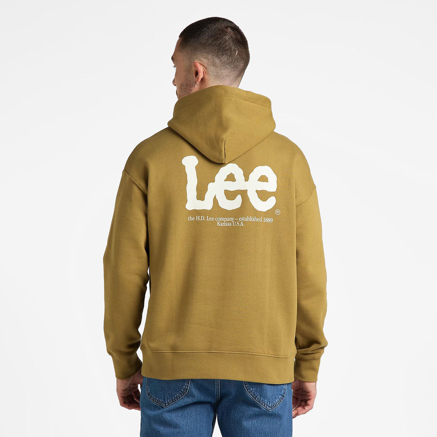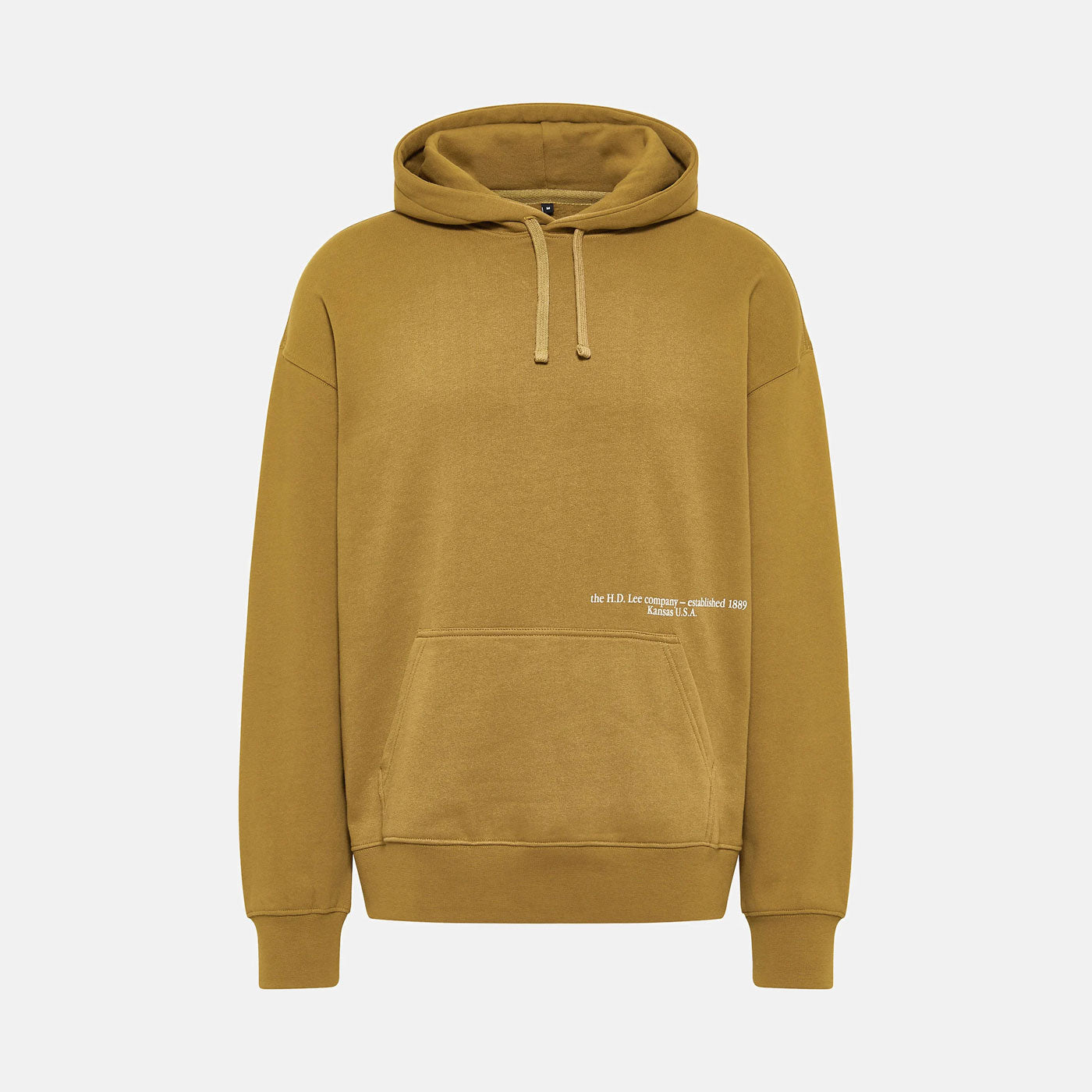 Incluye estampados colocados en una posición inusual en el pecho, cerca del bolsillo canguro, así como un gran logotipo Wobbly Lee en la espalda.