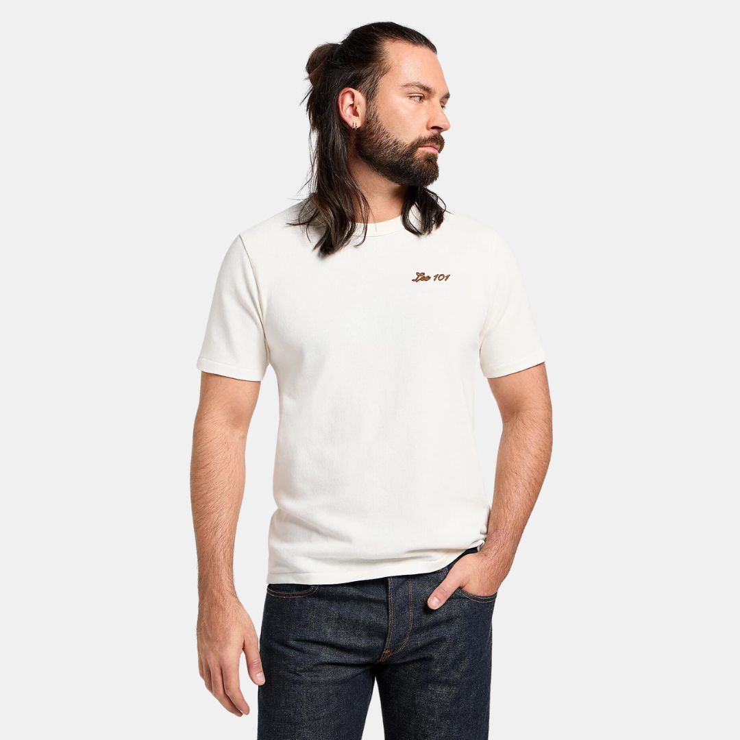 Crea un look auténtico para el día a día con la camiseta 101. Su corte recto y su tejido de punto extragrueso le dan un toque y un tacto de primera, mientras que un gráfico de estilo Western adorna la parte trasera. De color Ecru, un blanco roto, con logotipo bordado y detalles de estilo Western, es un básico actualizado que no puede faltar en tu armario y combina a la perfección con tus vaqueros Lee favoritos. Confeccionada con algodón 100 %, se trata de una prenda cómoda para el día a día que te sorprenderá por su incomparable calidad.