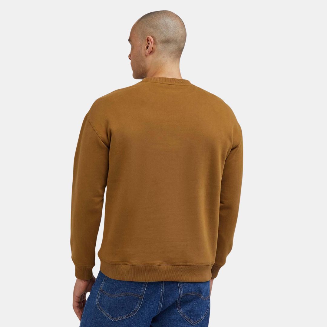 Esta prenda de tejido Fleece, abrigosa, resistente y de punto carbonizado para un tacto más elegante, destaca con un estilo premium. El cálido tono caramelo quemado combina a la perfección, haciendo a su vez de contraste con el denim azul. Combina esta pieza con tus Lee Jeans favoritos. El logotipo en el pecho viene de la mano de etiquetas inspiradas en la ropa de trabajo, lo que añade a esta pieza una nota refinada y tradicional.