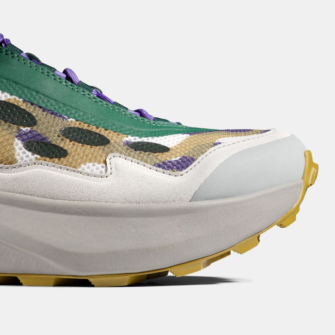 En colaboración con Flowers for Society, combinamos un diseño innovador con un rendimiento outdoor, inspirado en la necesidad de escapar de las presiones de la vida moderna y reconectar con la naturaleza. Estos zapatos están diseñados para excursionistas rápidos que buscan una zancada optimizada sin sacrificar estabilidad. Una plantilla Ortholite proporciona un confort incomparable, mientras que una entresuela Vibram SLE EVA ofrece hasta un 15% más de absorción de impactos que un EVA promedio. La varilla Flextron mejora el control dinámico y la estabilidad torsional. Una suela exterior Vibram Megagrip Litebase con Traction Lug ofrece una tracción superior en tramos empinados en condiciones húmedas o secas. La suela con forma de balancín asegura un aterrizaje suave en cada paso y un movimiento eficiente hacia adelante. Construidos con una parte superior resistente y transpirable de malla, los Aenergy Seed Ultra están equipados incluso para el terreno montañoso más avanzado.