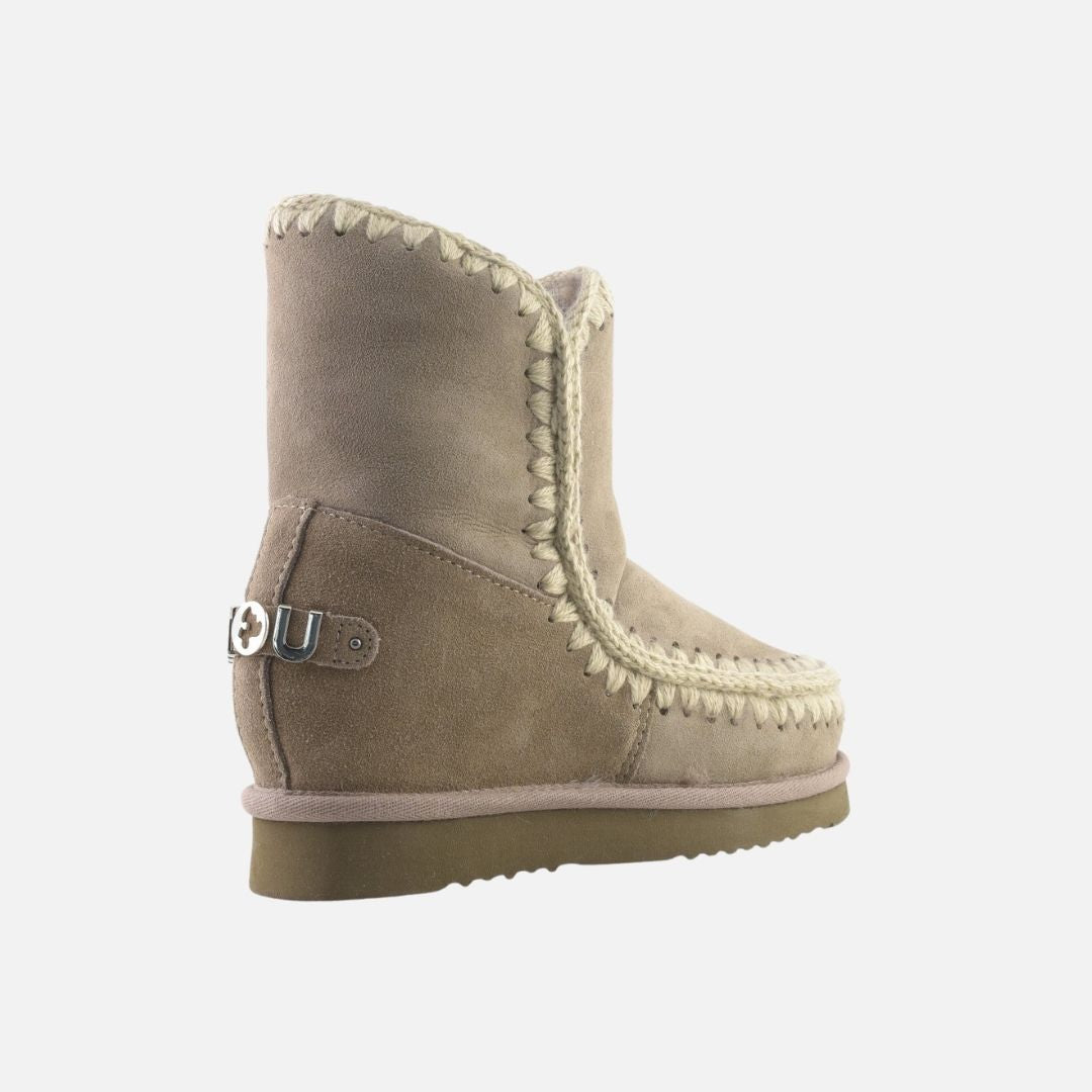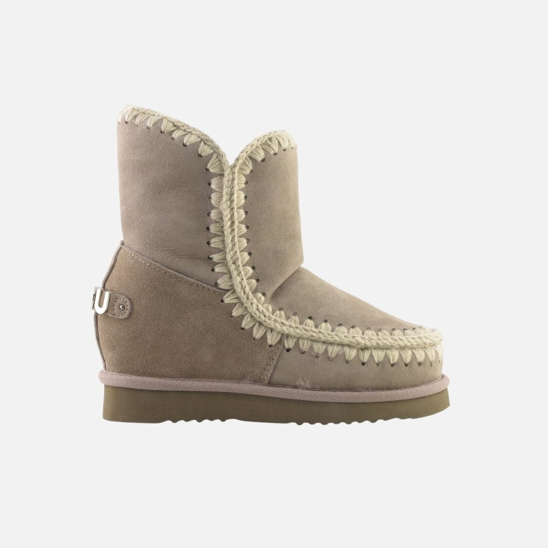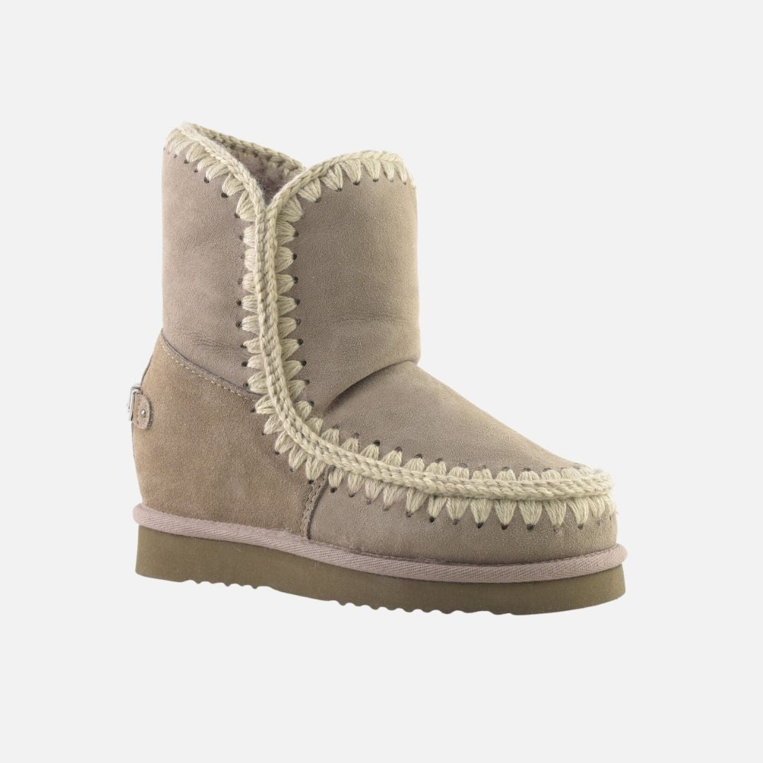 Una pieza esencial en el vestuario invernal de mou, las eskimo de cuña baja con un gran logo metálico representan lo mejor del icono mou con un tacón oculto de 5 cm y una forma más estilizada. Increíblemente cómodas y favorecedoras, este modelo está elaborado con suave piel genuina de oveja, con costuras de lana tejidas a mano, un soporte de apoyo para el talón y una resistente suela de EVA. Altura 23 cm. Regular fit.