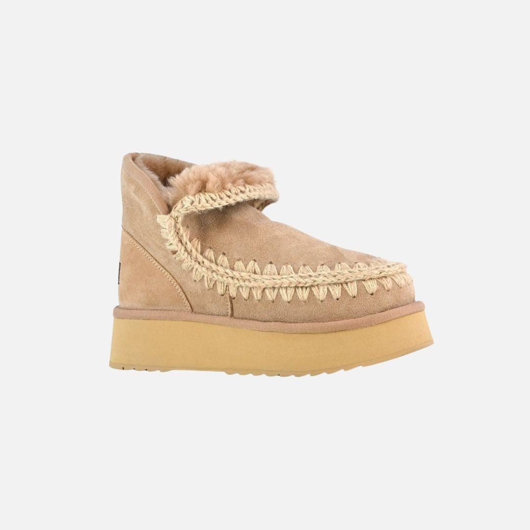 Novedad para la temporada Otoño-Invierno 24, las botas de plataforma mini eskimo están realizadas a mano por artesanos expertos en lujoso ante con las características costuras de lana de la marca. Increíblemente cómodas y resistentes con suela de EVA. Altura 18 cm.