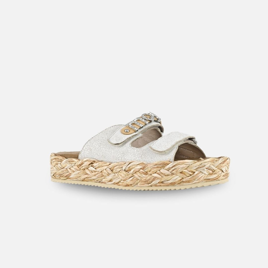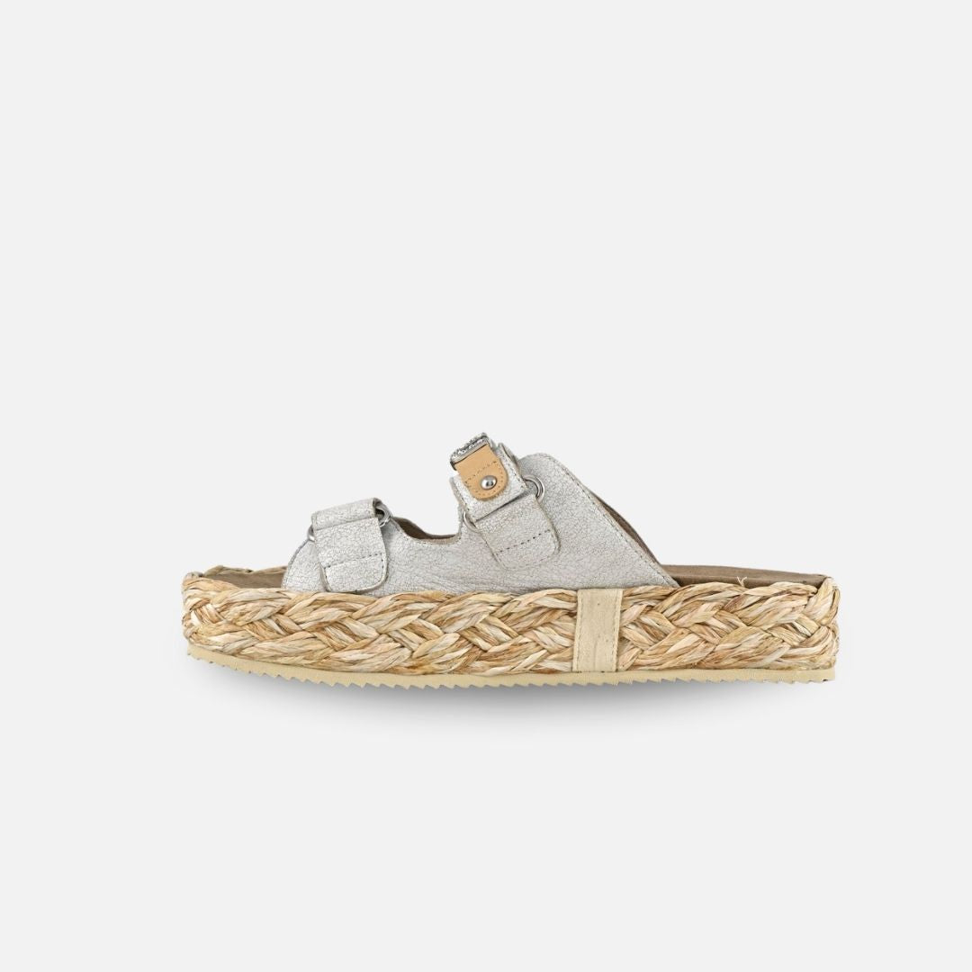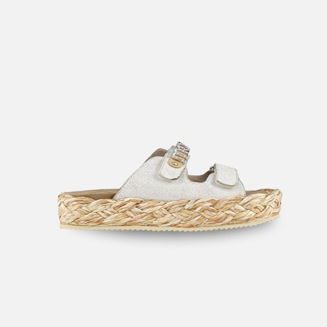 Mou Raffia Braid Sandal Leather Upper Crackled White