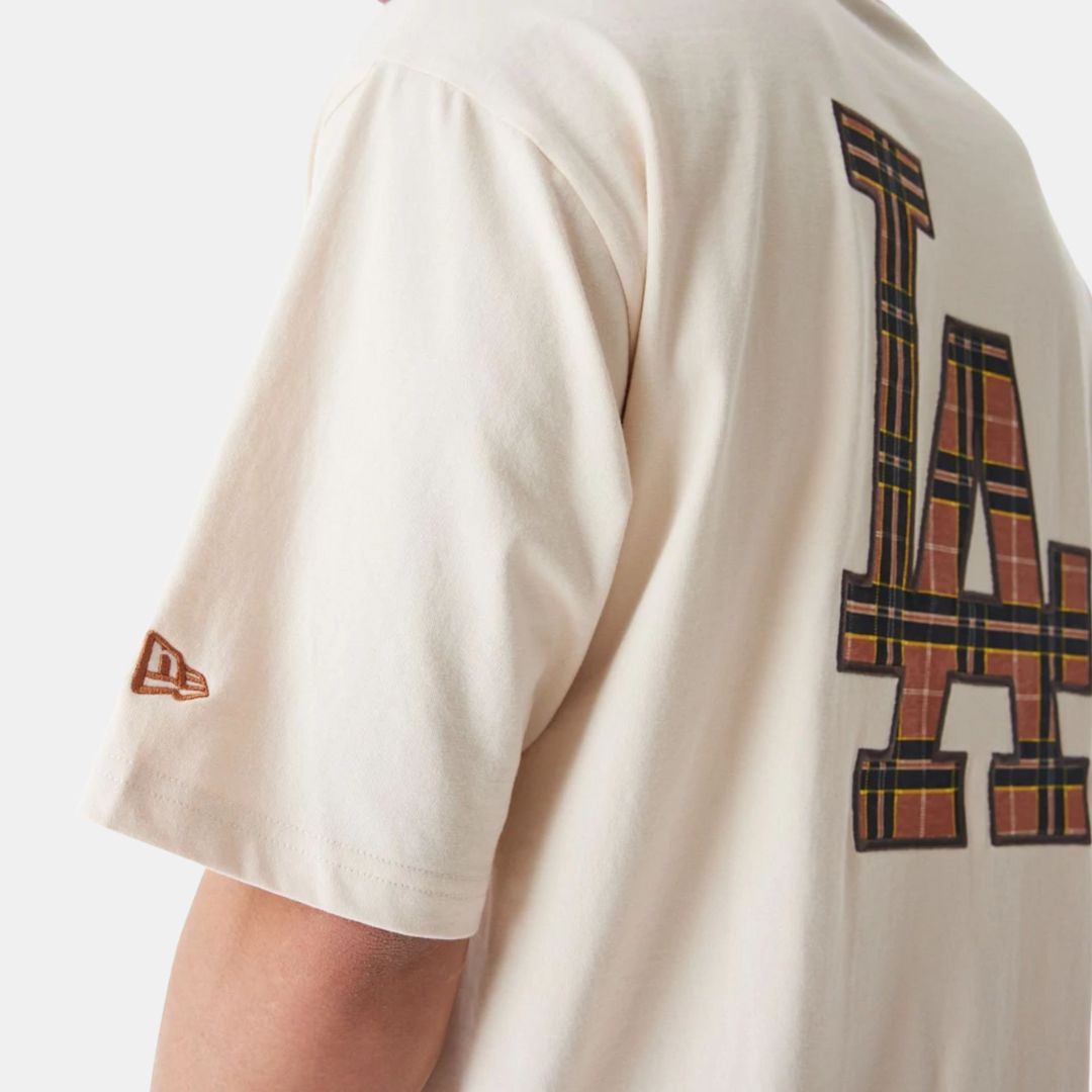 New Era LA Dodgers MLB Tartan Infill Beige Oversized T-Shirt