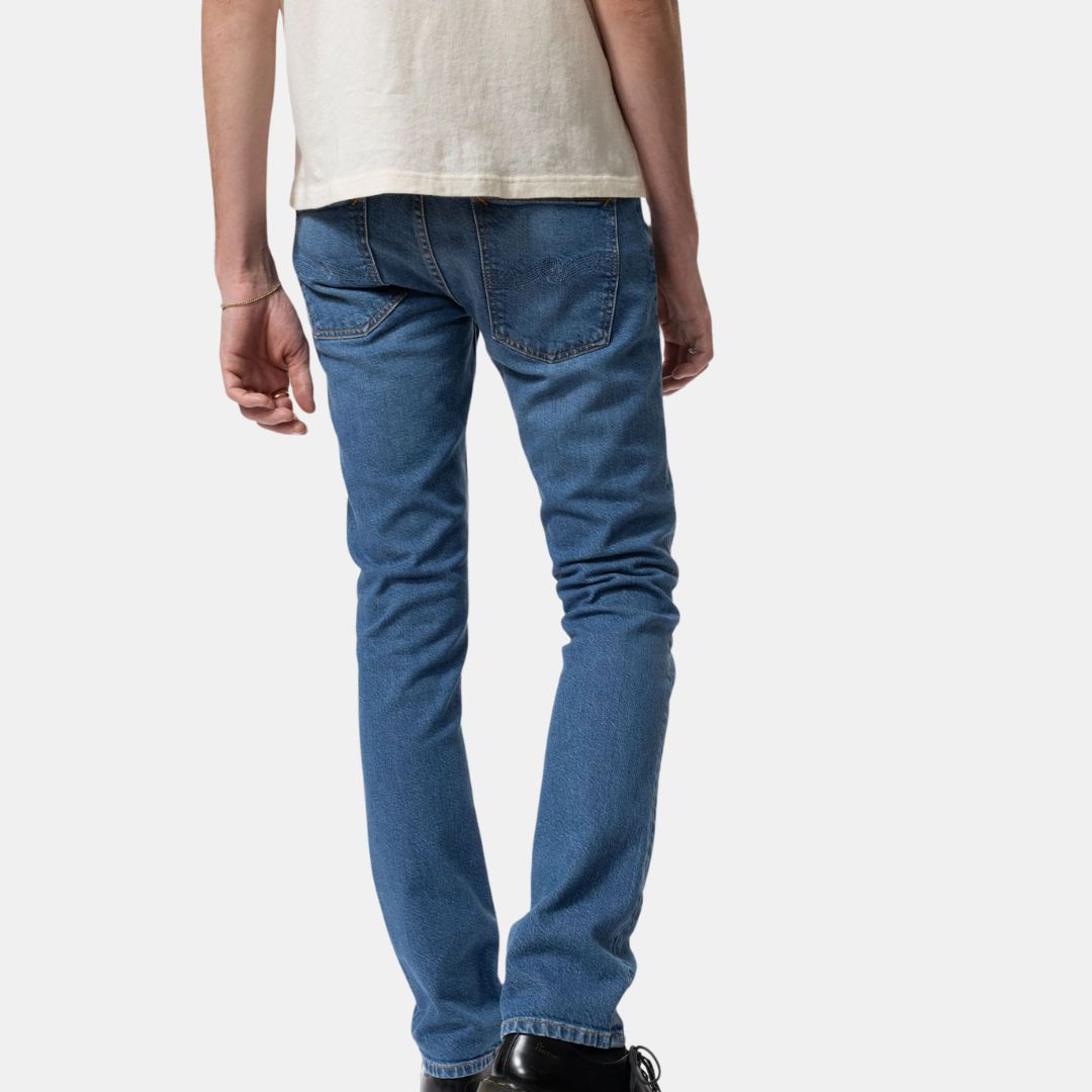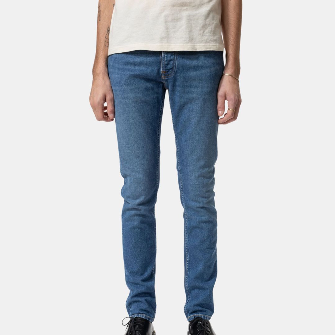 Vaqueros slim fit de pierna recta, en denim de sarga rota lavada en azul medio. Suavemente lavados con auténticas marcas de uso para un look vintage y gran comodidad. Fabricados en algodón orgánico.