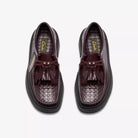 - Parte superior de cuero de uva morada premium con detalle de flecos removibles en la pala