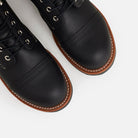 El modelo Iron Ranger 8084 Black Harness de Red Wing Shoes es un clásico de Red Wing y se fabrica en Red Wing, Minnesota. El modelo Iron Ranger 8084 está inspirado en la cordillera Mesabi, en el norte de Minnesota, una zona agreste conocida por sus minas de hierro. Los hombres que trabajaban allí eran conocidos como "Iron Rangers", lo que enfatizaba su espíritu aventurero. El Iron Ranger se distingue por su doble puntera de cuero que proporciona mayor seguridad. El Iron Ranger cuenta con protección en el talón para una mejor sujeción y el cuero Black Harness conserva su forma original. El modelo Iron Ranger 8084 cuenta con una suela Vibram 430 Mini Lug, flexible y resistente al aceite, e incluye cordones negros de taslan.