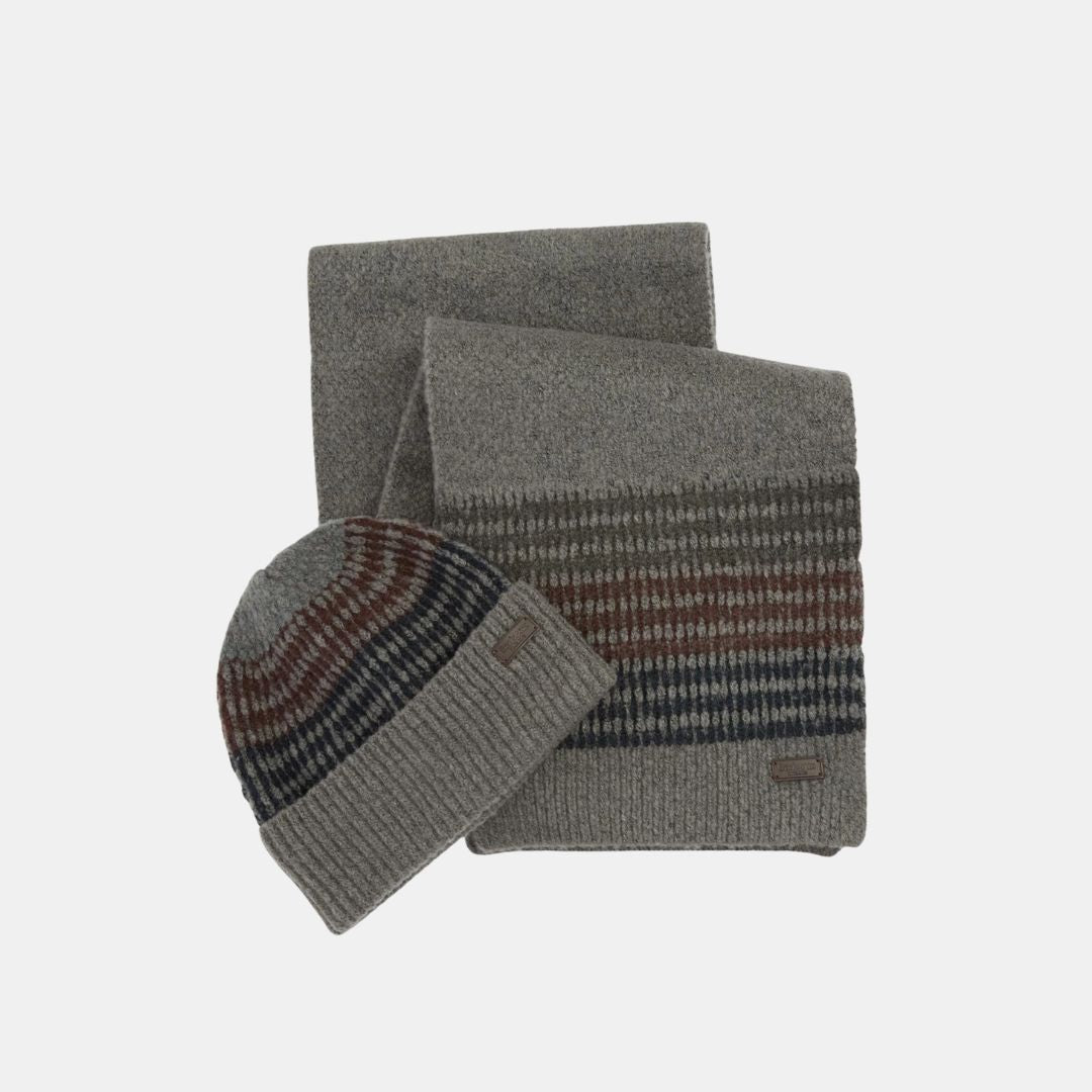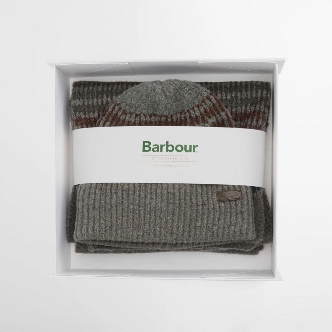 Barbour Branton Beanie and Scarf Gift Set Midnight Oak