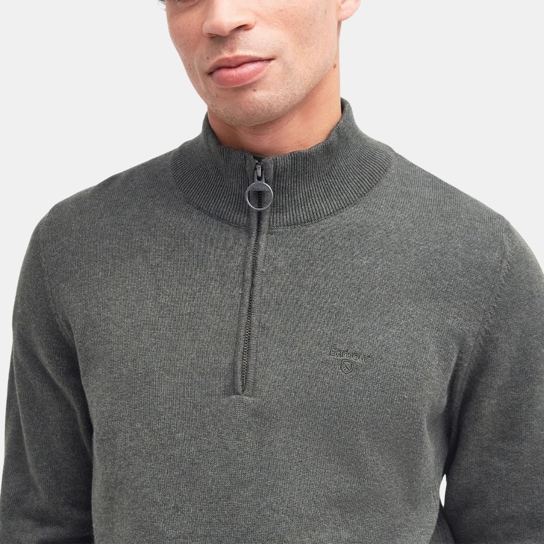 Barbour Cotton Half-Zip Jumper Olive Marl