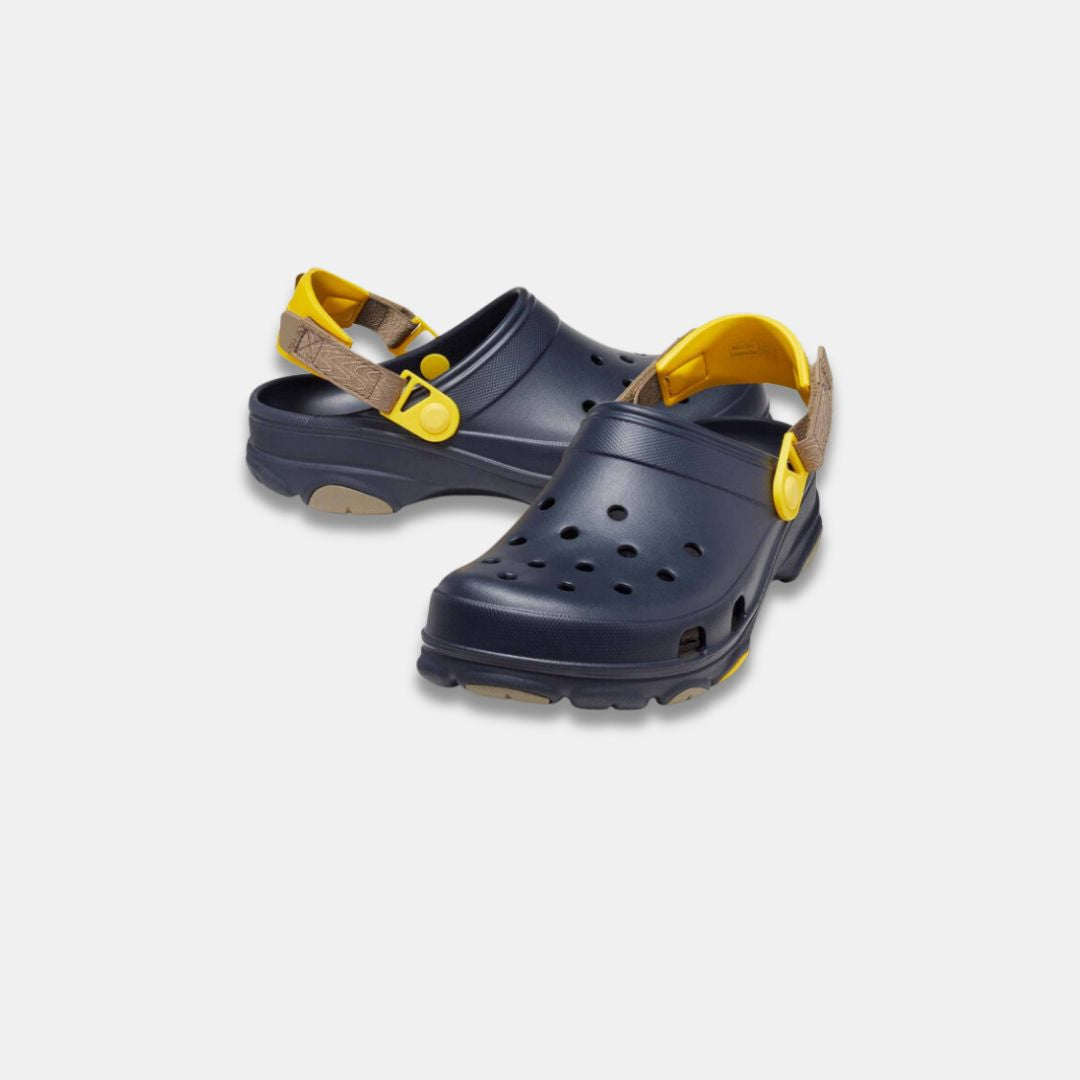 Viajar. Exploración. Aventuras cercanas y le lejos. El clásico All-Terrain Clog está listo para todo, incluso en los entornos más duros. Con una suela exterior más resistente y una correa turbo ajustable, el suelo debajo de los pies nunca se ha sentido más superable. La construcción ligera Croslite™ los convierte en una opción práctica y empacable para cualquier salida. Es hora de cambiar a la tracción total. ¡Dar la vuelta a esa correa y ve a buscar tu diversión!