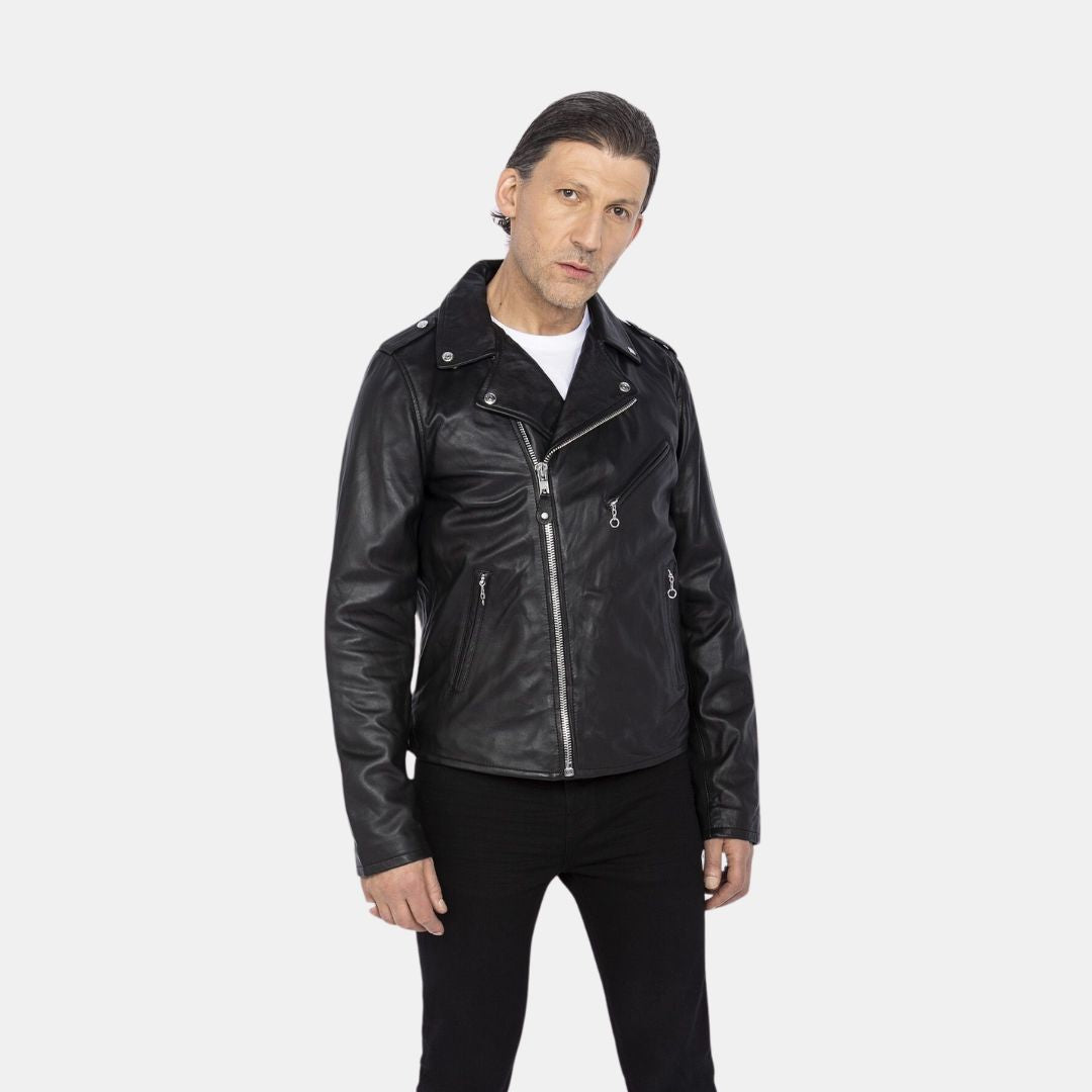 Esta legendaria chaqueta de piel de cordero Perfecto, con su apariencia suave y flexible, es la pieza esencial del guardarropa masculino.