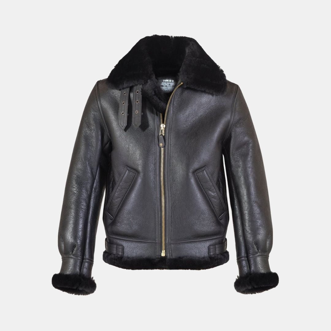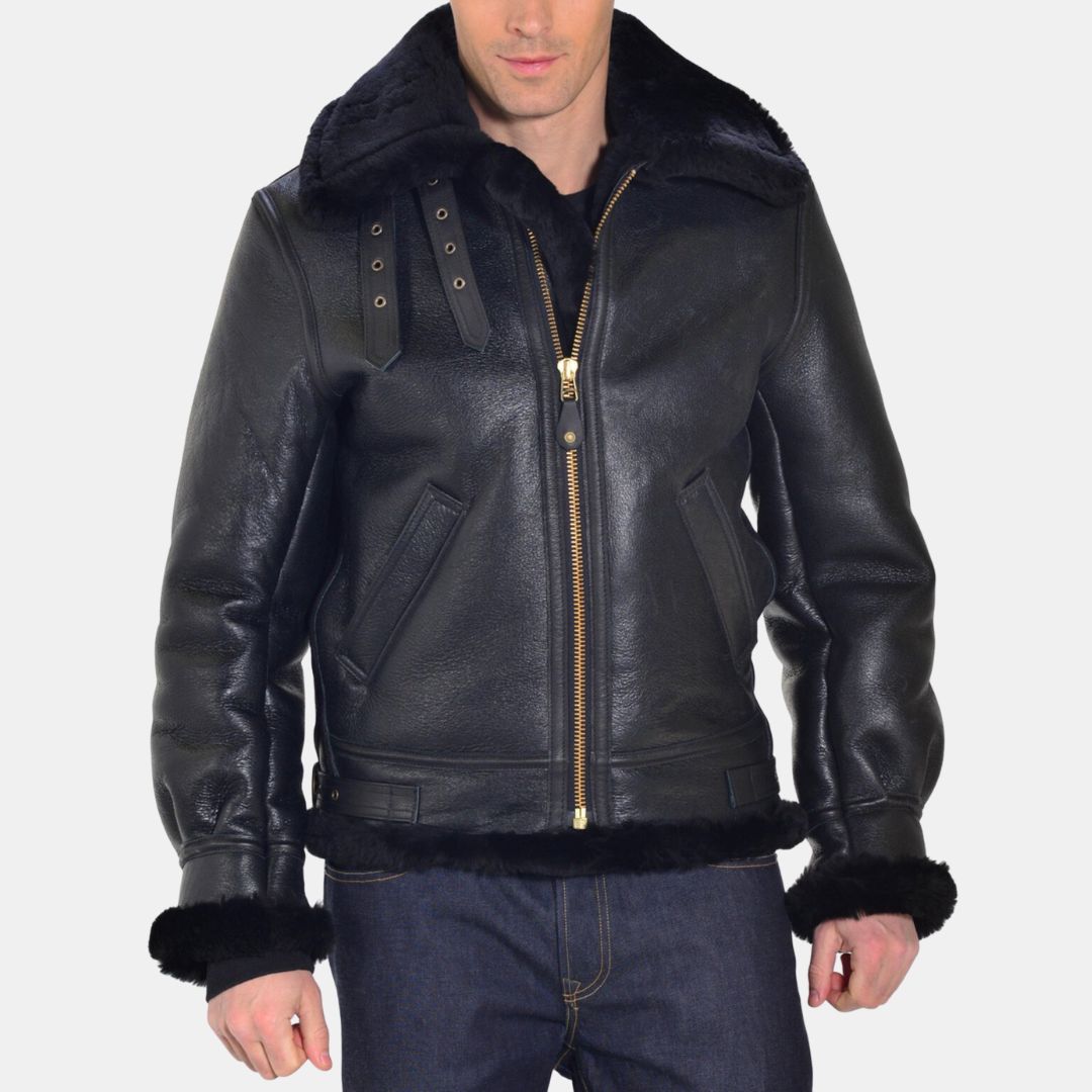 Schott NYC B-3 Bomber Jacket Sheepskin Leather Black