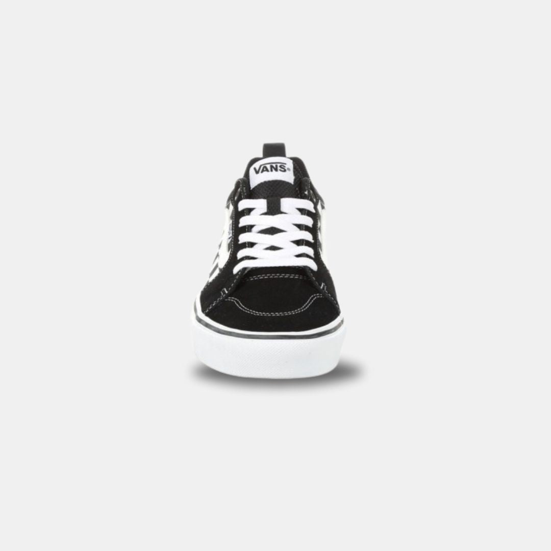 La zapatilla Vans Men's Filmore es perfecta para aquellos que buscan un estilo clásico con un toque moderno. Su diseño en blanco y negro a cuadros es atemporal, mientras que su suela de goma brinda comodidad y durabilidad. Un must-have para cualquier amante del skate y la moda urbana.