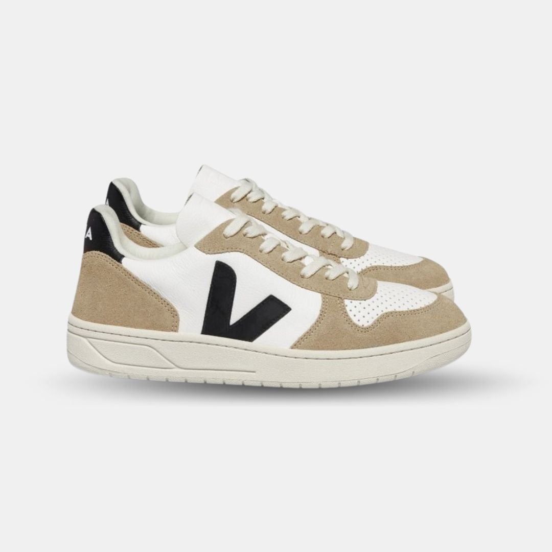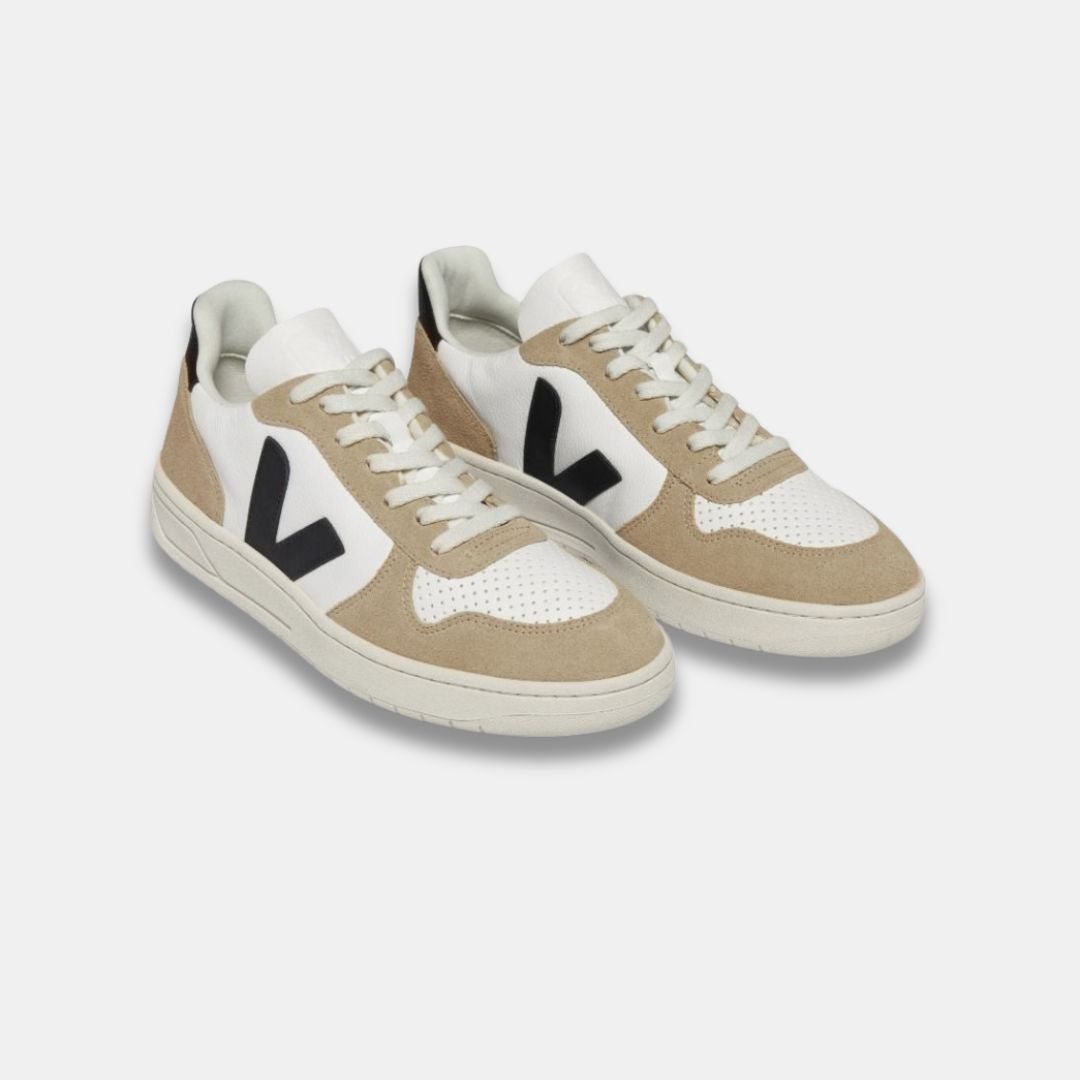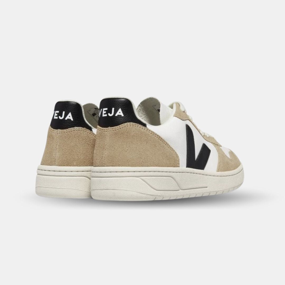 Veja Women's V-10 Chromefree Leather Extra White Black Sahara