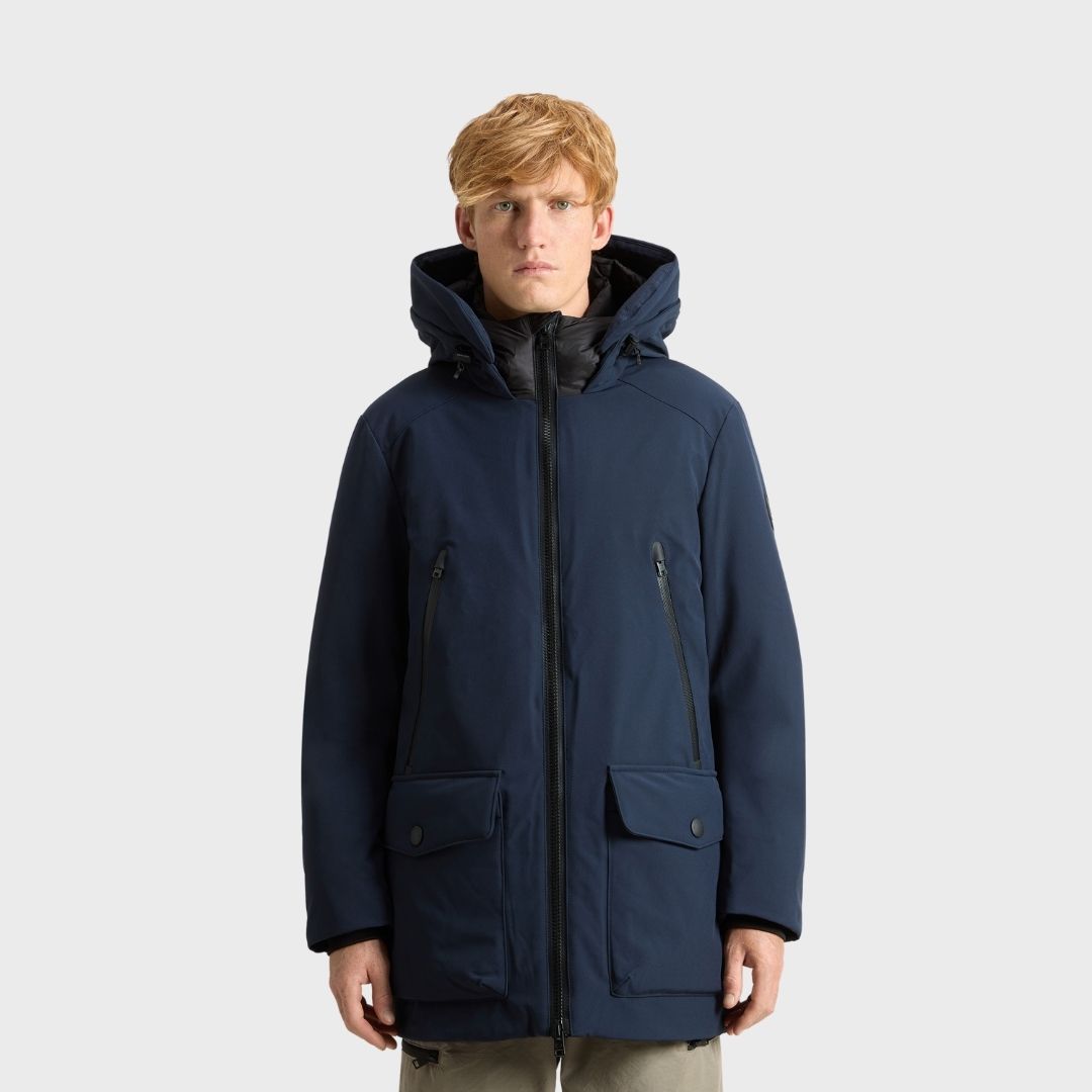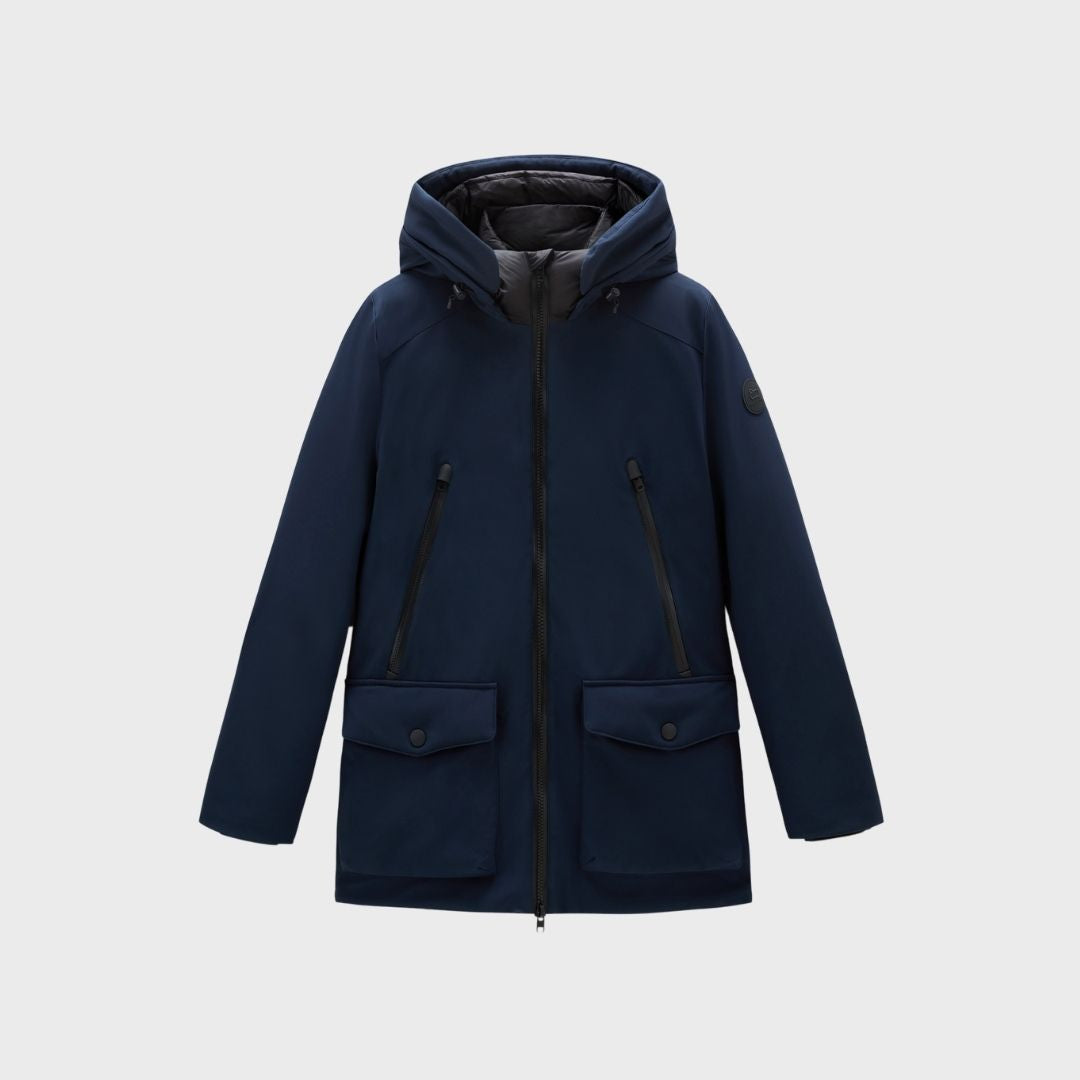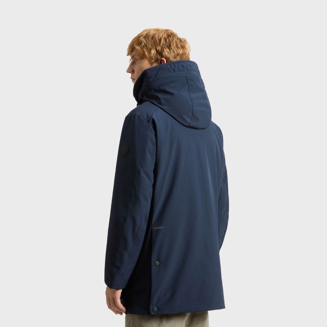 Woolrich Men's Parka In Tech Softshell Melton Blue